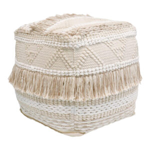 Σκαμπό-πουφ Scauni Inart βαμβάκι σε λευκή-μπεζ απόχρωση 50x50x50εκ