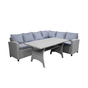 Σαλόνι κήπου Calmness pakoworld σετ 4τμχ rattan μαύρο-ύφασμα γκρι