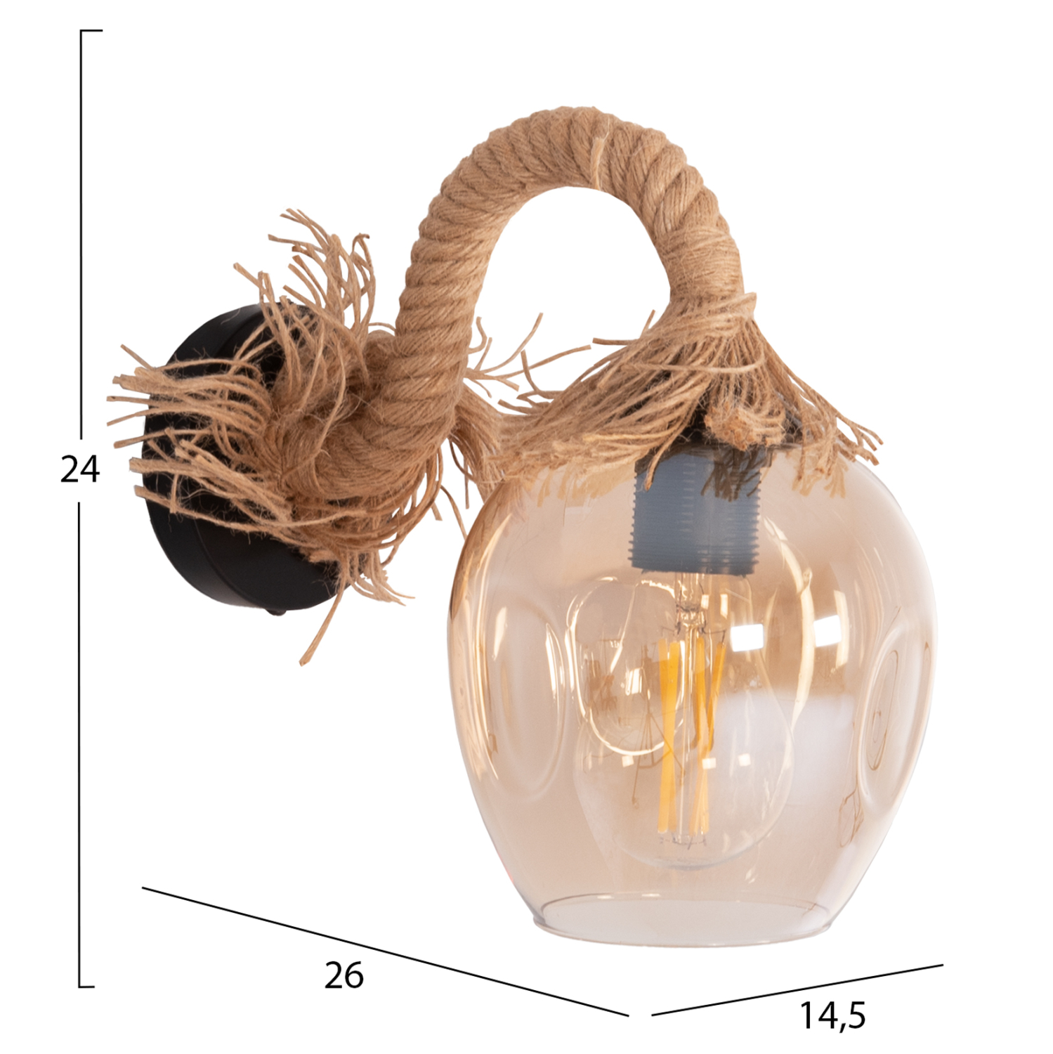 Η απλίκα τοίχου POPPER είναι μια πολύ ιδιαίτερη πρόταση που θα τραβήξει τα βλέμματα. Η βάση τοίχου είναι μεταλλική όπως και ο όμορφος καμπυλωτός βραχίονας, ο οποίος είναι επενδυμένος με σχοινί. Η λάμπα βρίσκεται σε γυάλινο ημιδιαφανές καπέλο που επιτείνει την ιδιαιτερότητα αυτής της απλίκας!