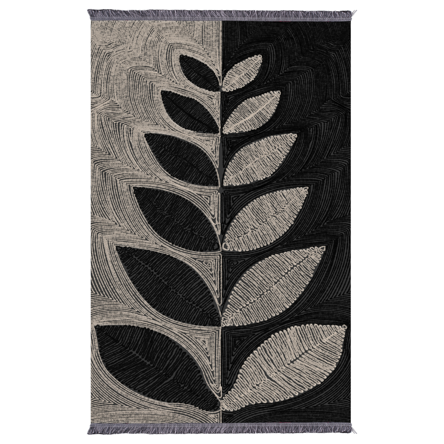 ΗΜ7675.40- χαλί σαλονιού—— Σας παρουσιάζουμε την νέα προσθήκη στην γκάμα των προϊόντων μας. Αυτό το χαλί απεικονίζει ένα κλαρί με συμμετρικά φύλλα δέντρου σε αντίθετο χρωματισμό (καθρεφτισμό) δεξιά με αριστερά.