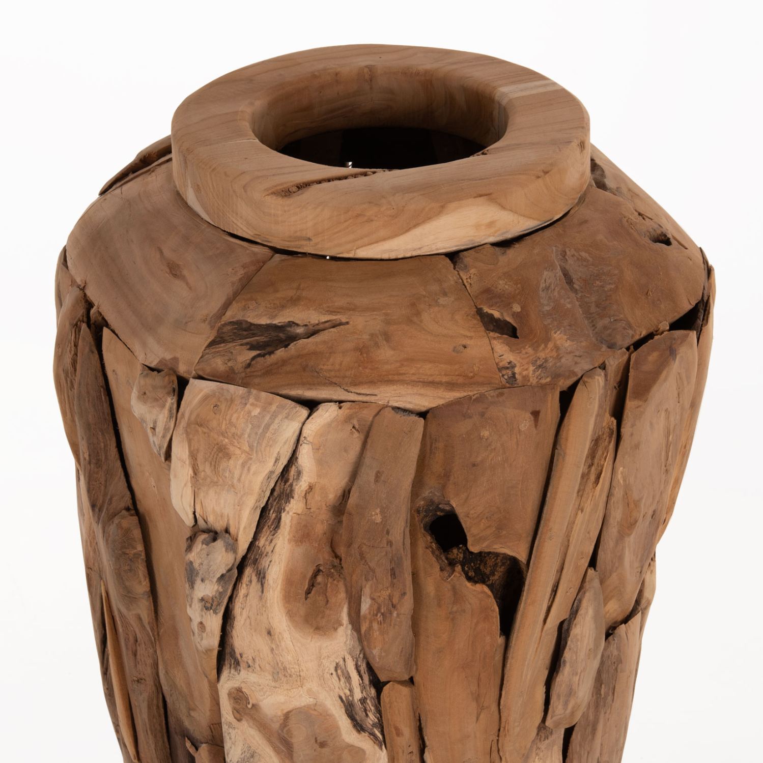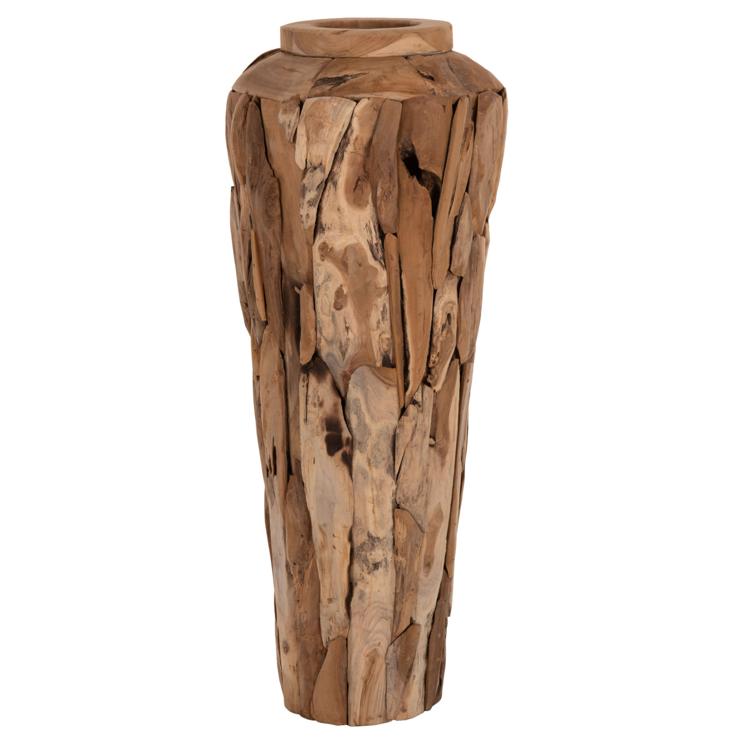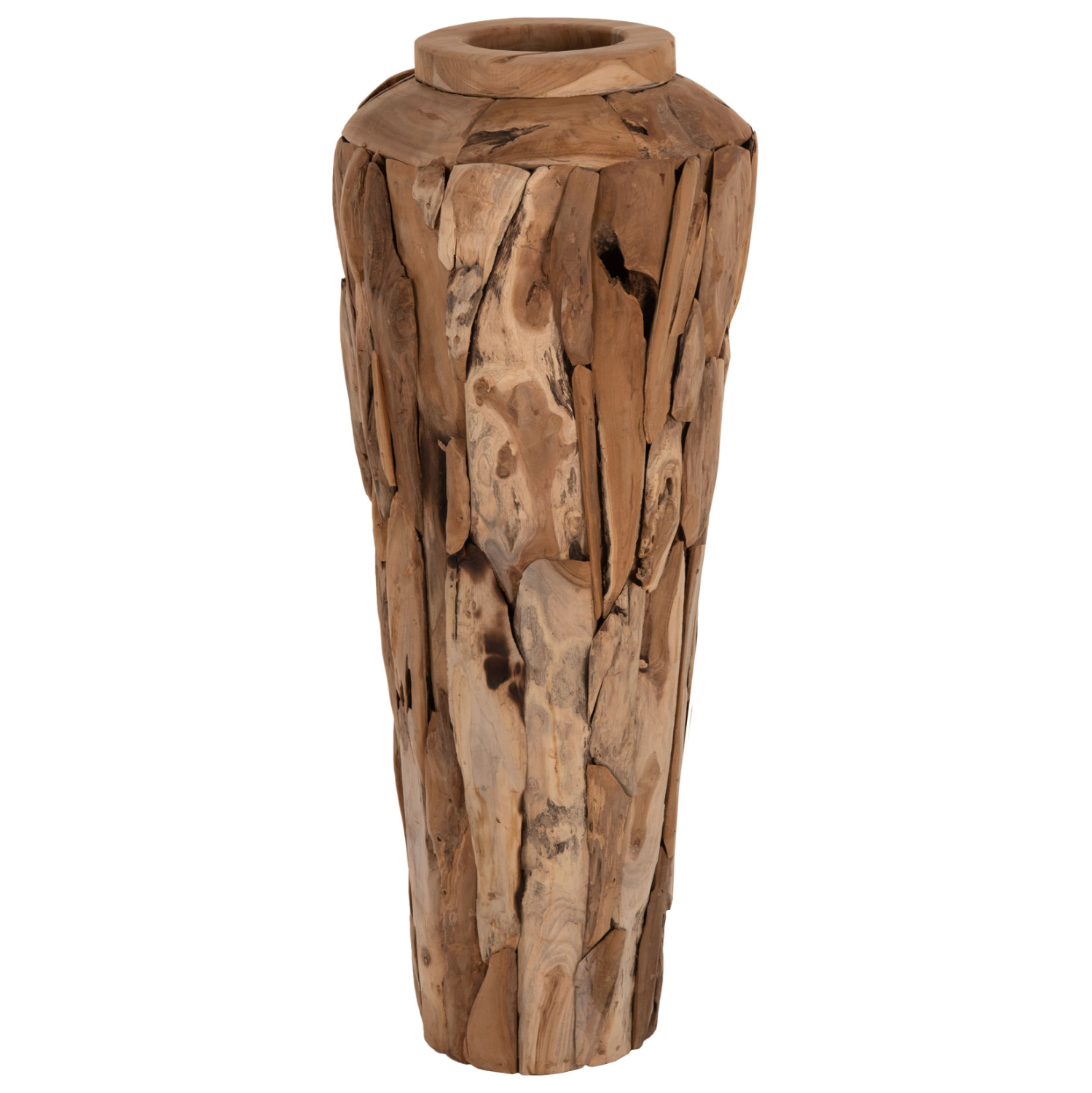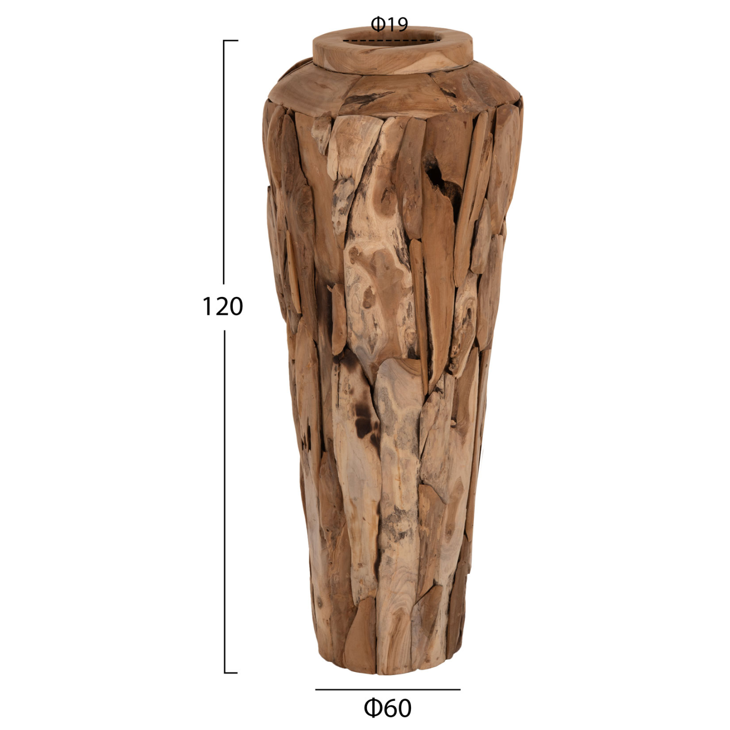 ΔΙΑΚΟΣΜΗΤΙΚΟ ΒΑΖΟ ΔΑΠΕΔΟΥ ZENIA HM7921 ΑΠΟ ΚΟΜΜΑΤΙΑ ΑΝΑΚΥΚΛΩΜΕΝΟΥ ΞΥΛΟΥ TEAK ΣΕ ΦΥΣΙΚΟ Φ50×120Υ εκ.