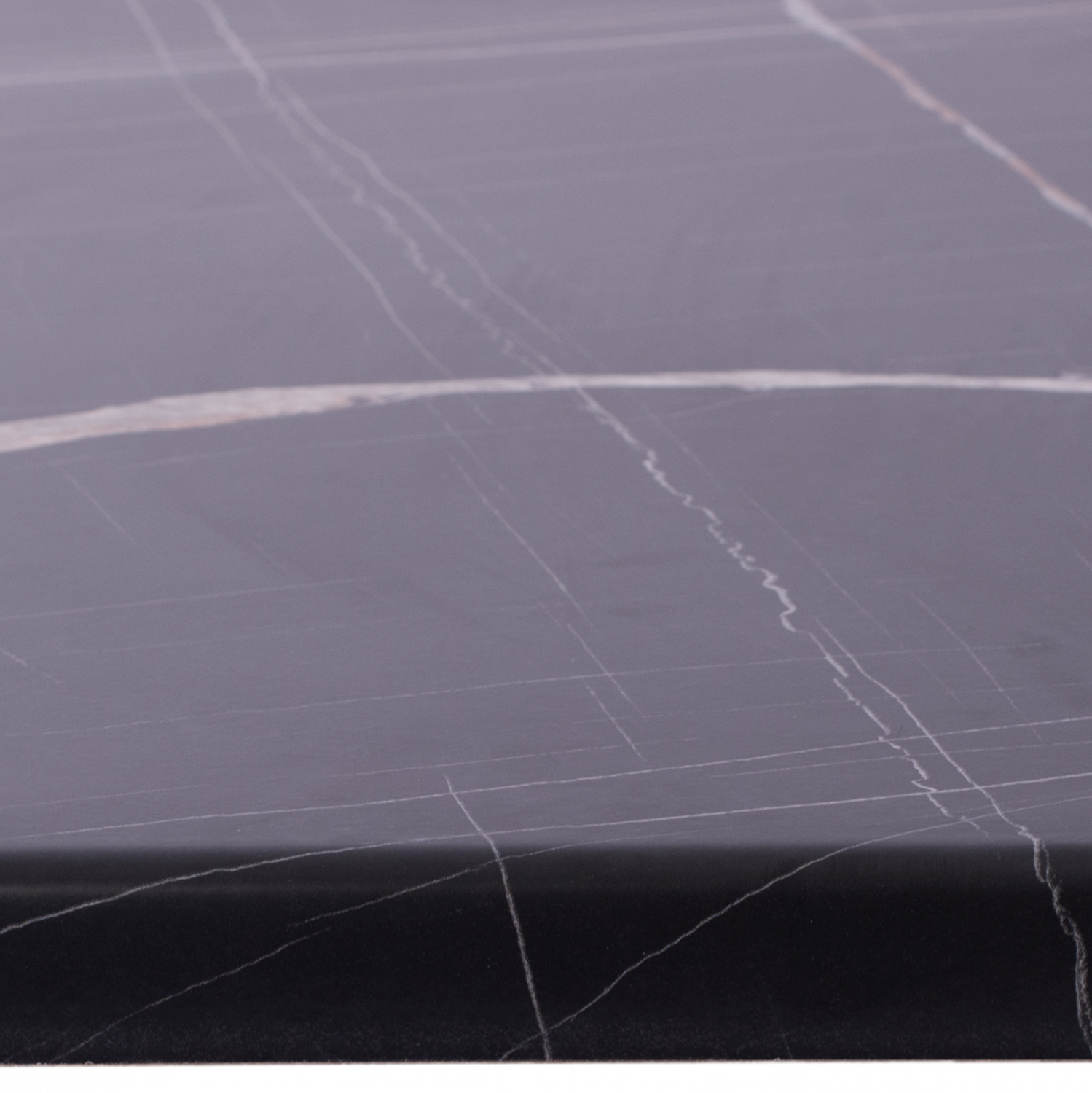 Επιφάνεια τραπεζιού werzalit 70X70 σε χρώμα μαύρο μάρμαρο με λευκές και μπεζ λεπτομέρειες.