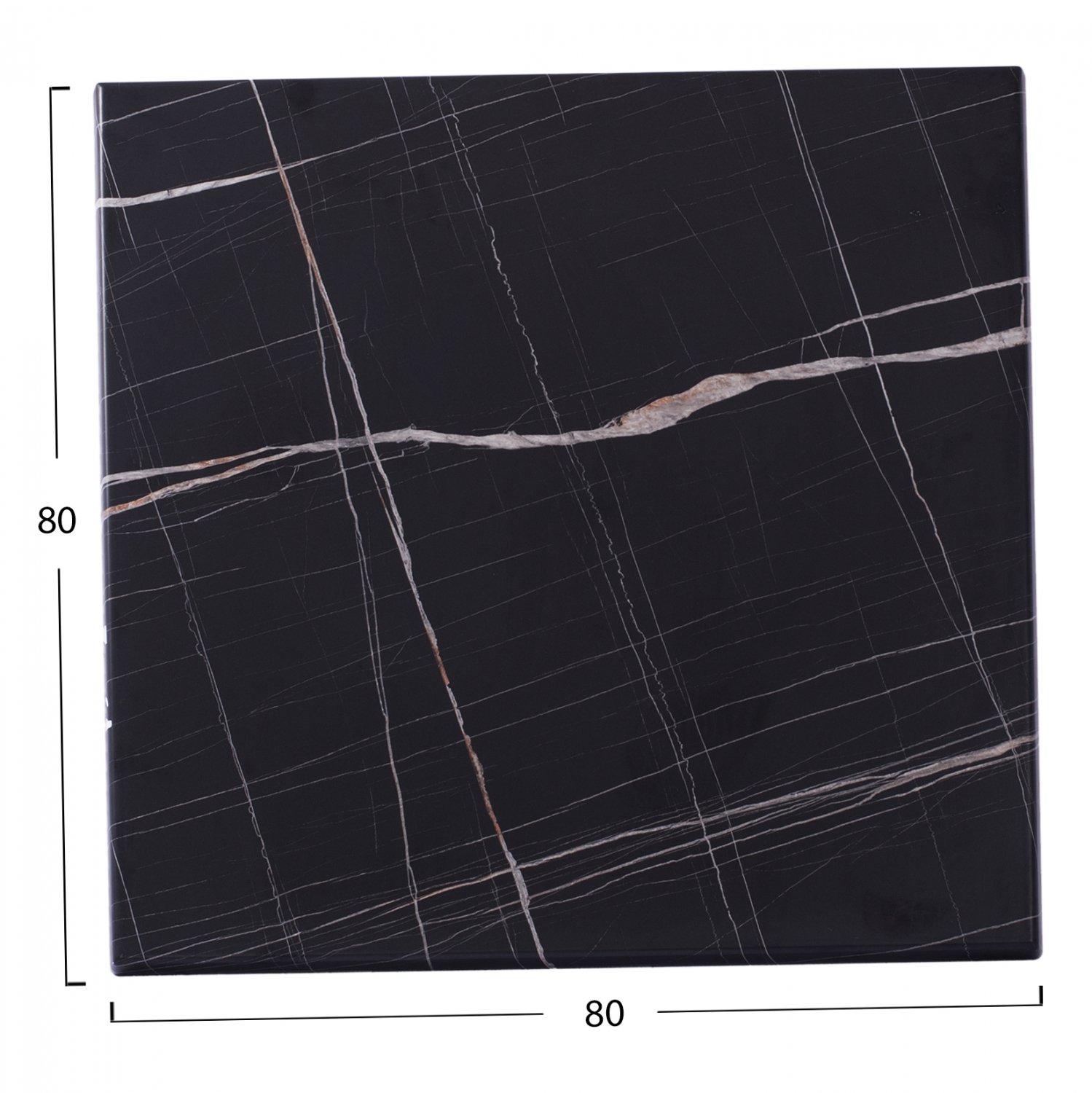Επιφάνεια τραπεζιού werzalit 80X80 σε χρώμα μαύρο μάρμαρο με λευκές και μπεζ λεπτομέρειες.
