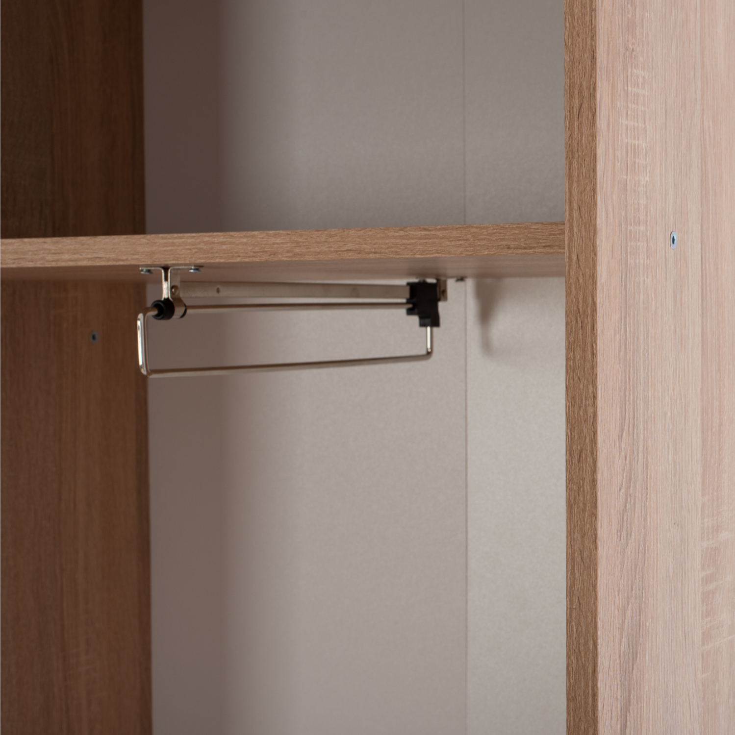 Μία σύνθεση επίπλου που συνδυάζει στη δεξιά πλευρά συρόμενη ντουλάπα με μεγάλο καθρέπτη εξωτερικά, ενώ εσωτερικά διαθέτει 1 ράφι στο επάνω μέρος και μια κάθετη συρόμενη προς τα έξω ράβδο κρέμασης, που διευκολύνει το κρέμασμα των ρούχων.