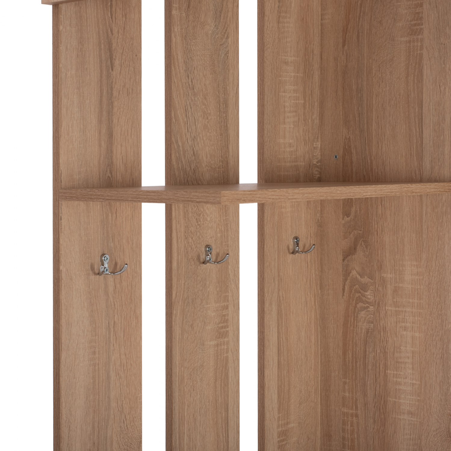 Στην αριστερή πλευρά διαθέτει ράφι αποθήκευσης στο πάνω μέρος, χώρο για κρεμάστρες και 4 ράφια για αποθήκευση μικροαντικειμένων στο κάτω μέρος.