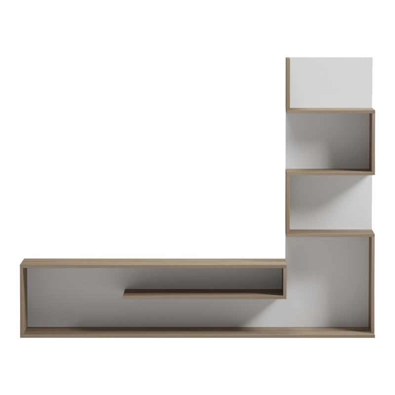 Έπιπλο τηλεόρασης με βιβλιοθήκη Cazenda pakoworld σε sonoma με λευκή απόχρωση 160x29x126εκ