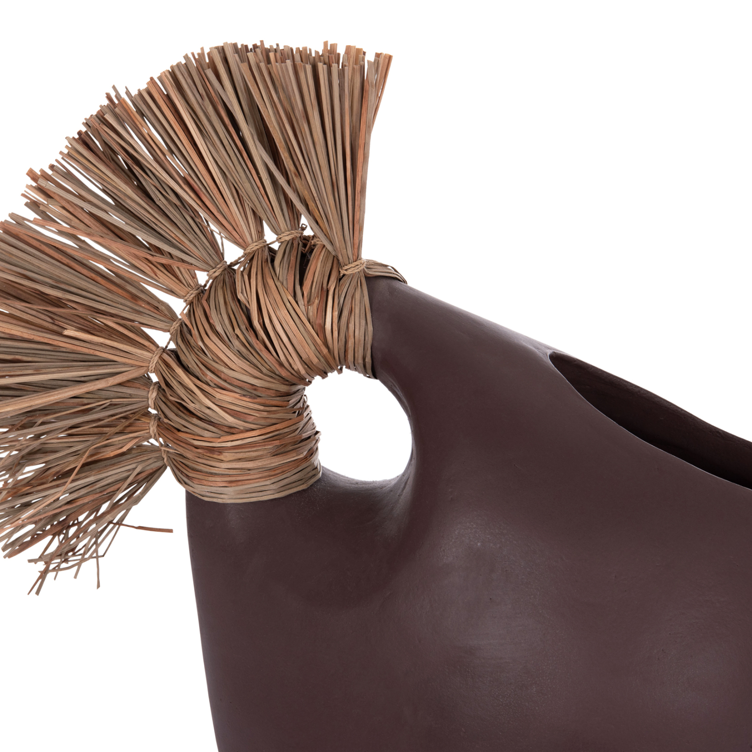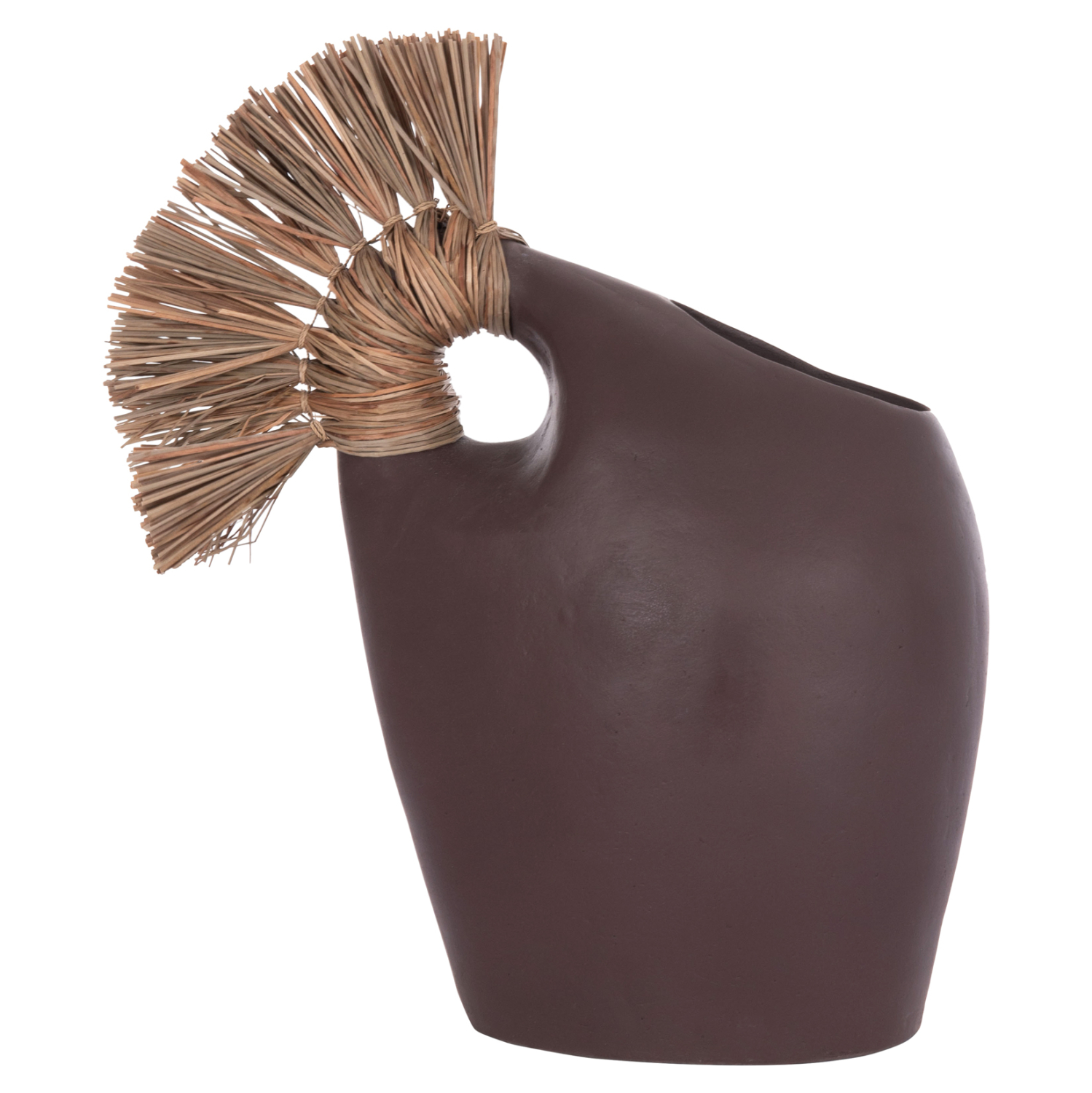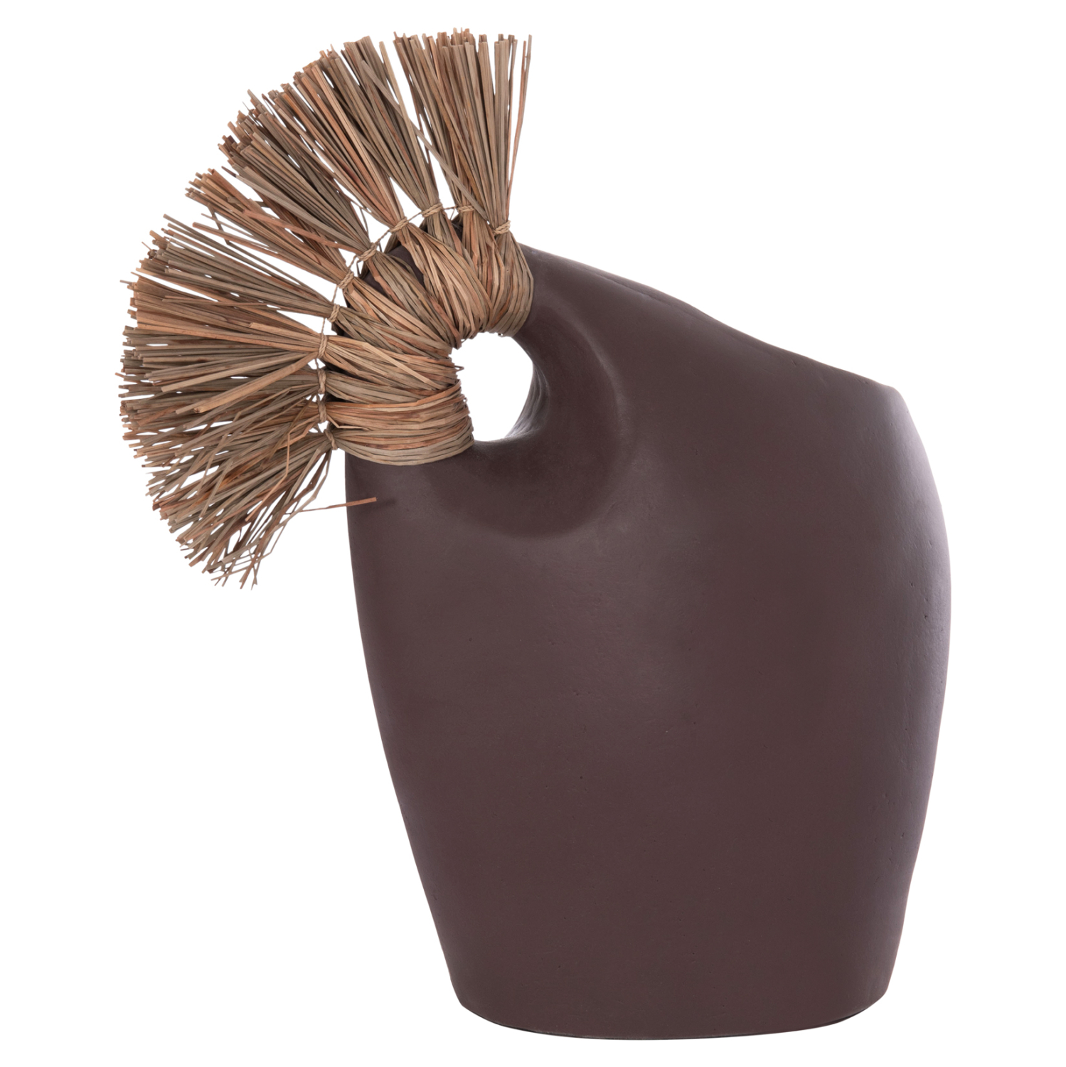 Το επιτραπέζιο χειροποίητο διακοσμητικό βάζο ALICA2 είναι ένα πολύ ιδιαίτερο διακοσμητικό στοιχείο για κάθε χώρο. Είναι κατασκευασμένο εξολοκλήρου από τερακότα σε ΣΟΚΟΛΑΤΙ χρώμα, ενώ διαθέτει και ένα χερούλι επενδυμένο με αποξηραμένο grass, και ένα φαρδύ στόμιο.