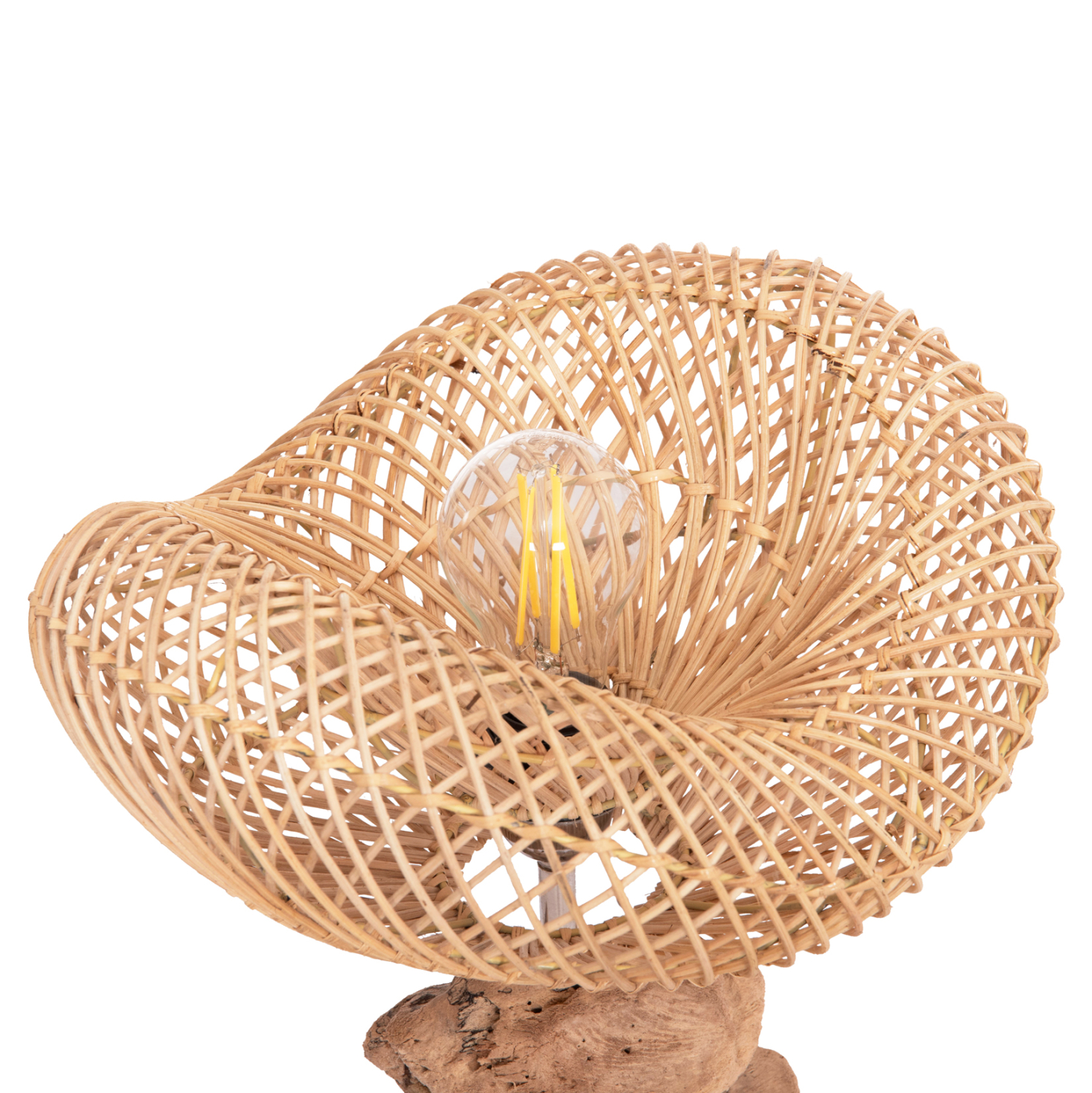 Φωτίστε και ταυτόχρονα διακοσμήστε τον χώρο που επιθυμείτε με το ιδιαίτερο επιτραπέζιο φωτιστικό IVAR. Η κολώνα/βάση αποτελείται από κομμάτια driftwood σε ΦΥΣΙΚΟ χρώμα που καλύπτουν την μεταλλική μπάρα η οποία υποστηρίζει το πολύ ιδιαίτερο καπέλο που είναι κατασκευασμένο από RATTAN σε ΦΥΣΙΚΟ χρώμα. To φωτιστικό μπορεί να χρησιμοποιηθεί σε καφέ, εστιατόρια, ξενοδοχεία, ακόμα και στο σπίτι, δίνοντας μια αίσθηση πολυτέλειας και ρουστίκ οικειότητας.