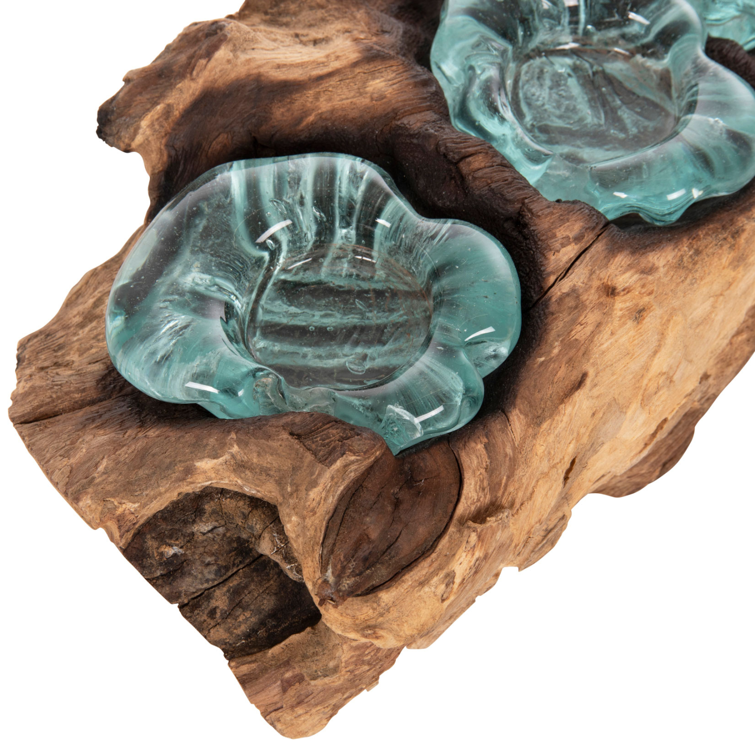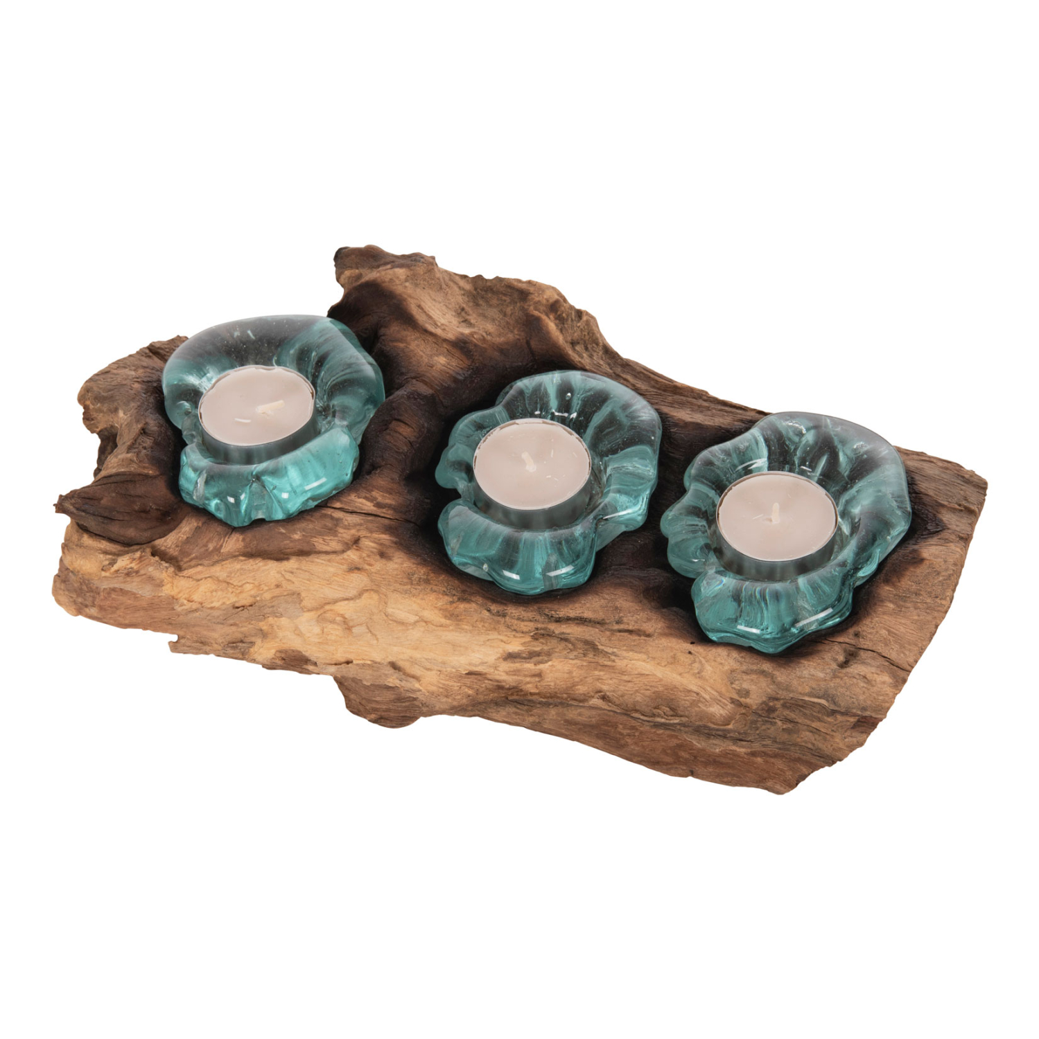 Το επιτραπέζιο διακοσμητικό HM4282 είναι μια βάση για 3 κεράκια ρεσό κατασκευασμένη από μασίφ ξύλο ΤΕΑΚ. Οι βάσεις για τα ρεσό είναι από γυαλί. Οι οπαδοί του ρουστίκ στυλ στην διακόσμηση θα ενθουσιαστούν με αυτή την πρόταση.