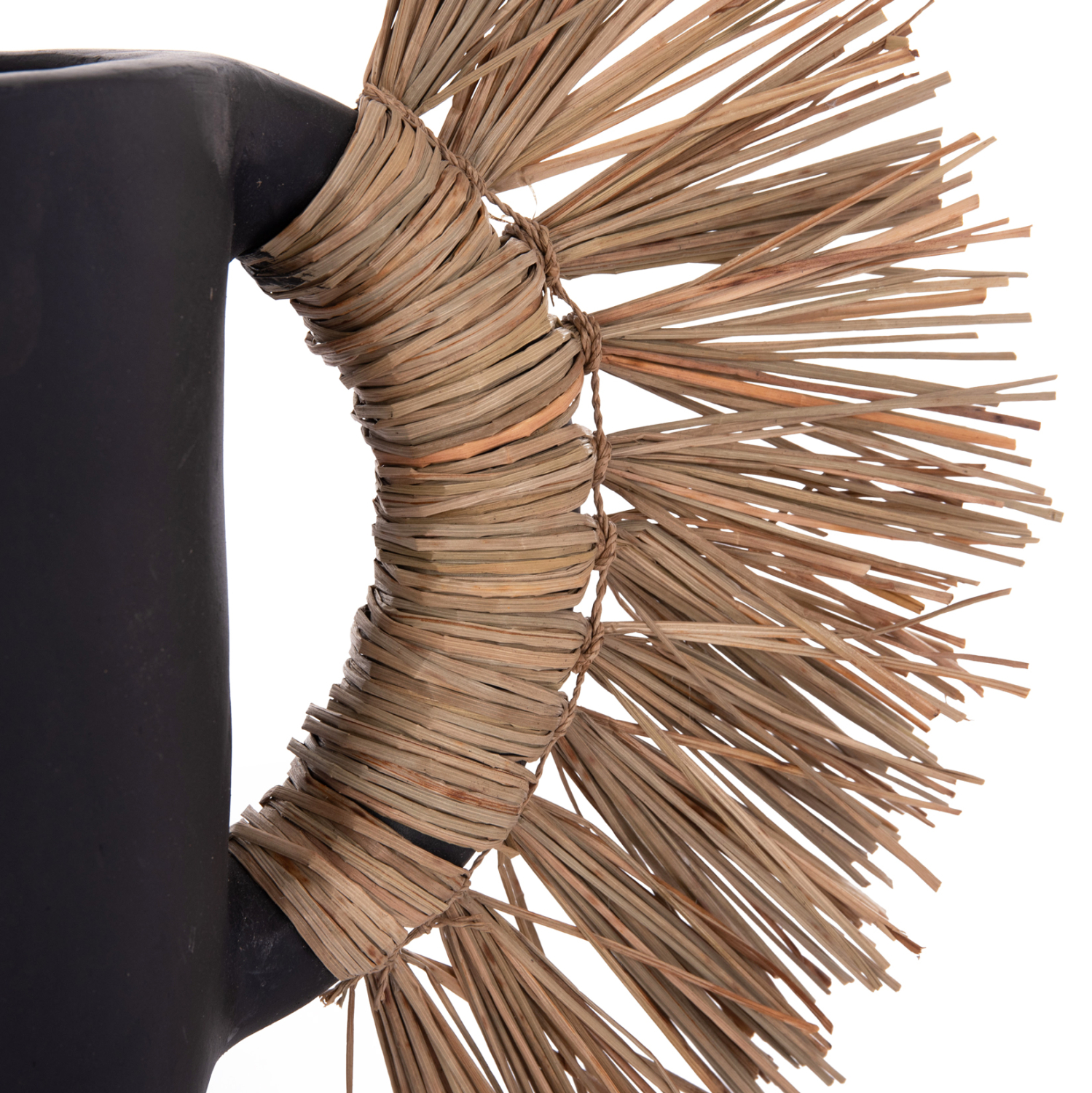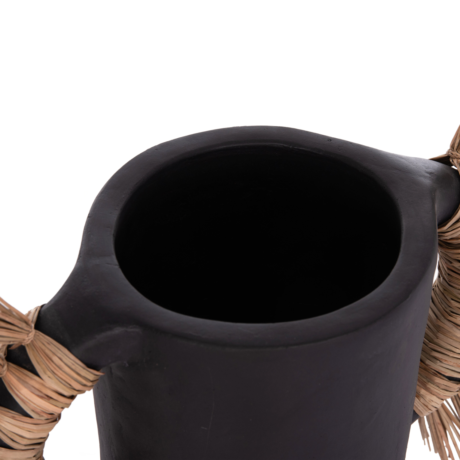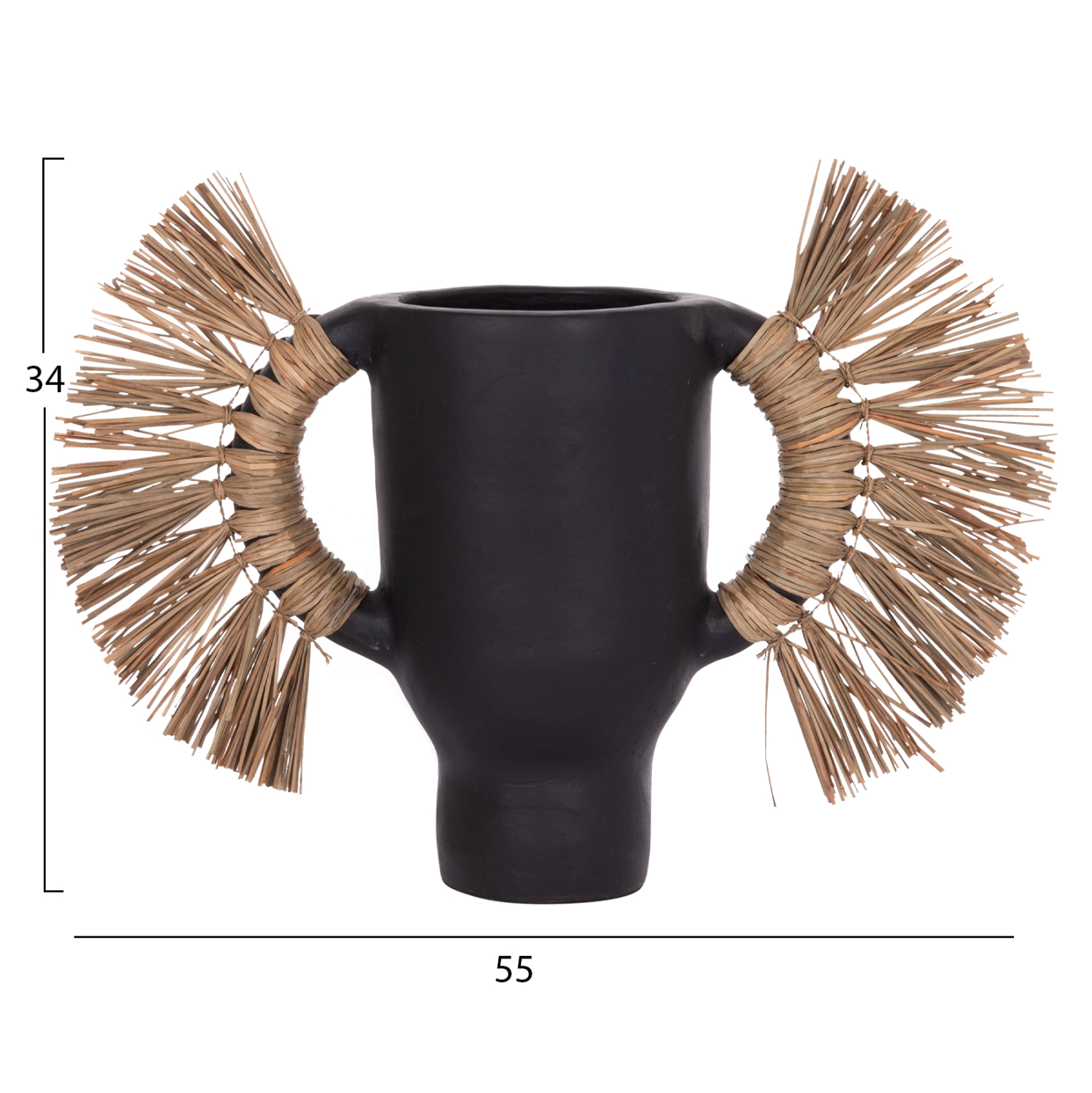 Το επιτραπέζιο χειροποίητο διακοσμητικό βάζο ALICA είναι ένα πολύ ιδιαίτερο διακοσμητικό στοιχείο για κάθε χώρο. Είναι κατασκευασμένο εξολοκλήρου από τερακότα σε ΜΑΥΡΟ χρώμα, ενώ διαθέτει και δύο χερούλια επενδυμένα με αποξηραμένο grass, και ένα σχετικά φαρδύ στόμιο.
