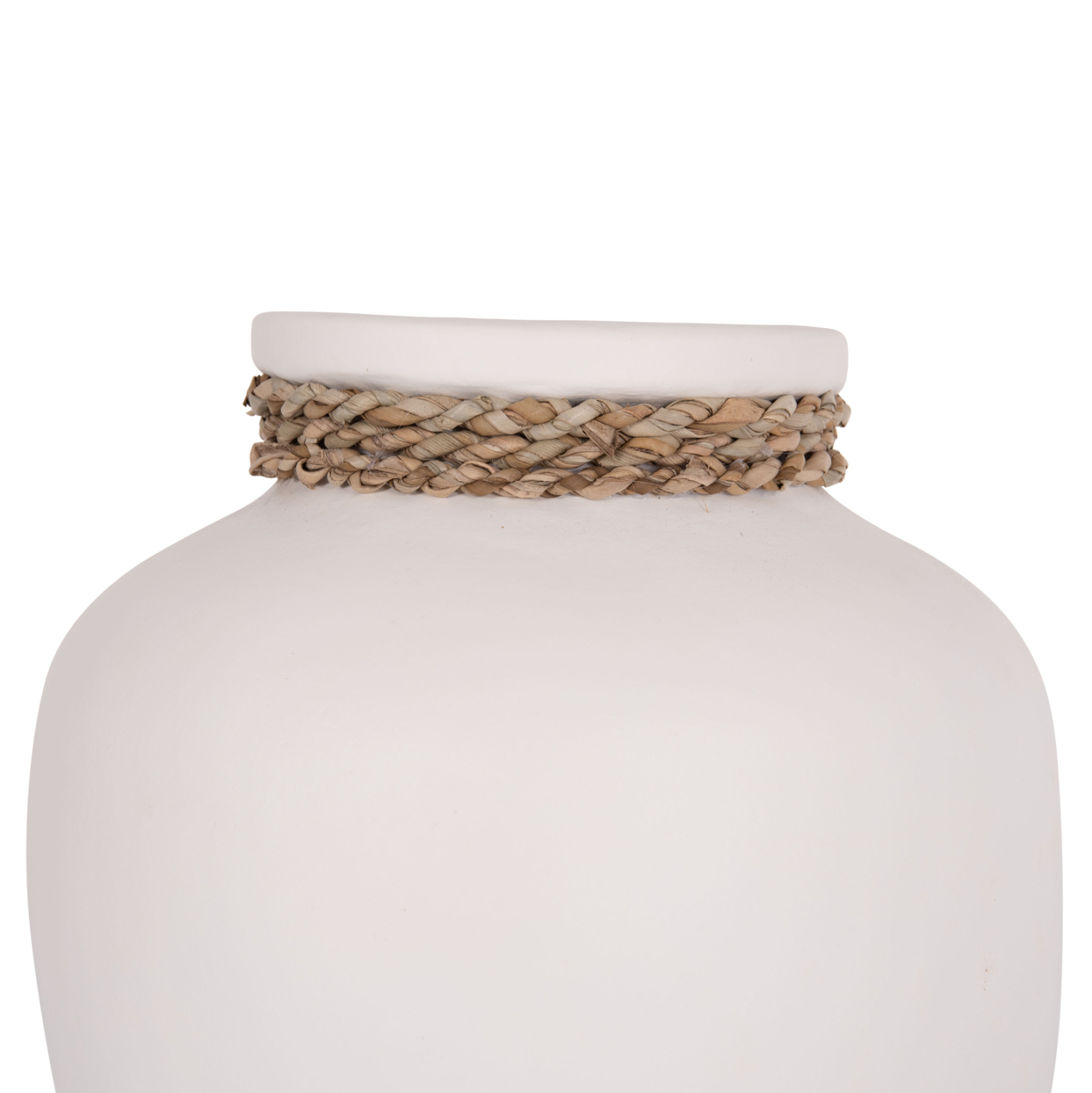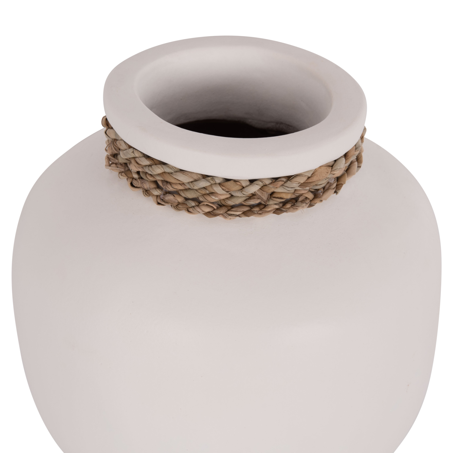 Το επιτραπέζιο χειροποίητο διακοσμητικό βάζο CAMMER είναι κατασκευασμένο εξολοκλήρου από τερακότα σε ΛΕΥΚΟ χρώμα ενώ διαθέτει διακοσμητική πλέξη από seagrass περιμετρικά στον «λαιμό» του βάζου. Ιδανικό για πληθώρα χώρων, τόσο για το σπίτι, όσο και για επαγγελματικούς χώρους.