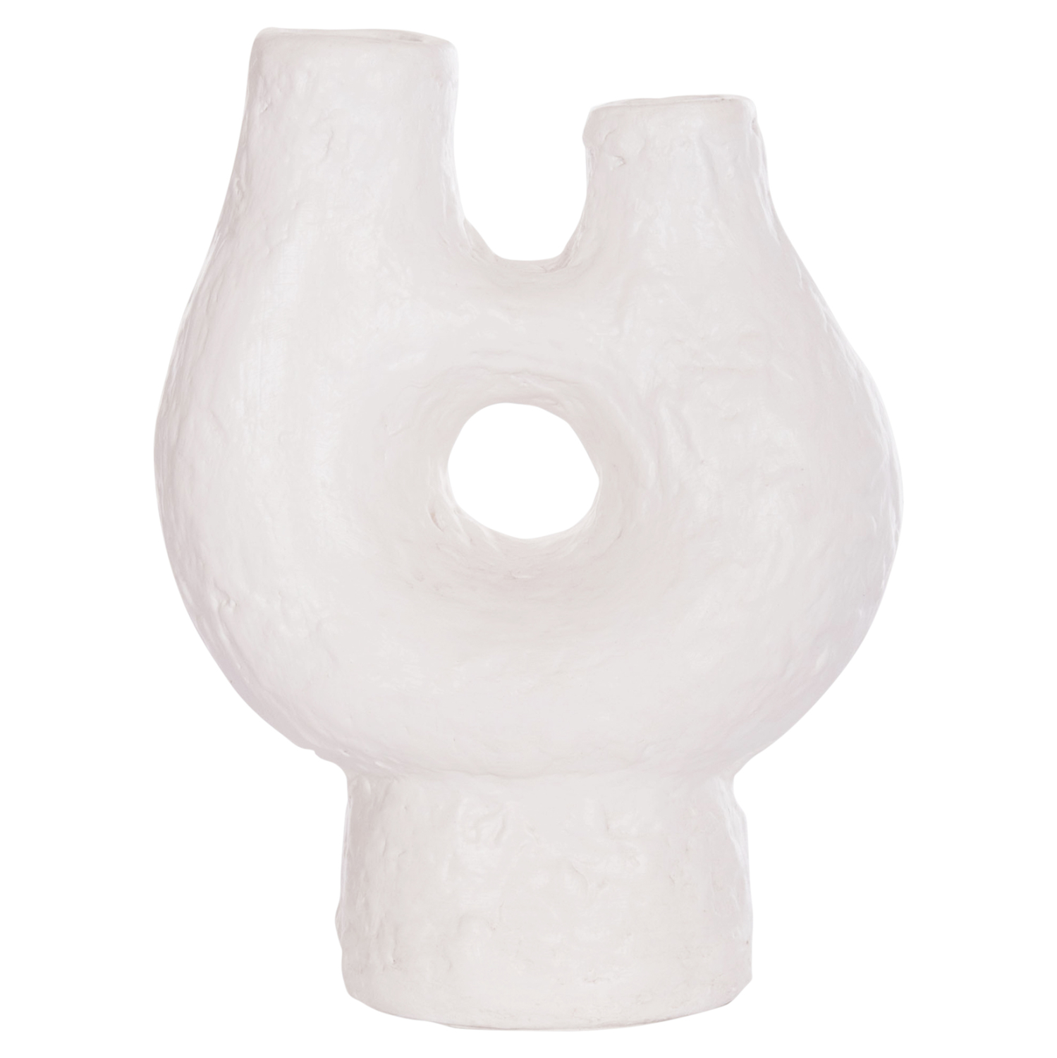 Το χειροποίητο επιτραπέζιο διακοσμητικό βάζο NAMENTIS με δύο στόμια είναι ένα πολύ ιδιαίτερο διακοσμητικό στοιχείο για κάθε χώρο. Είναι κατασκευασμένο εξολοκλήρου από τερακότα με σαγρέ υφή σε ΛΕΥΚΟ χρώμα, ακολουθώντας την σύγχρονη τάση στην εσωτερική διακόσμηση. Ιδανικό για πληθώρα χρήσεων και χώρων.