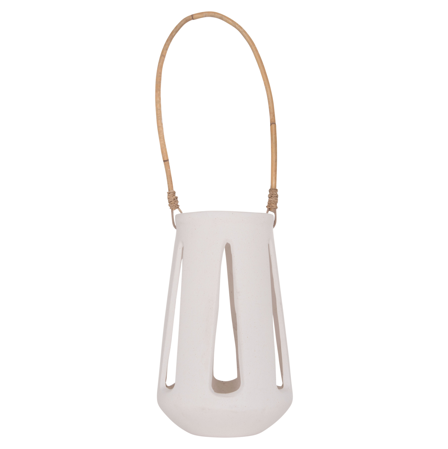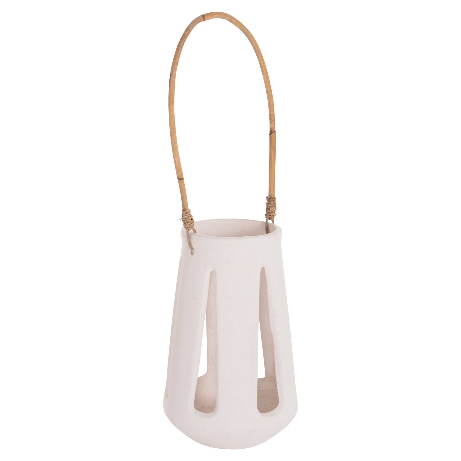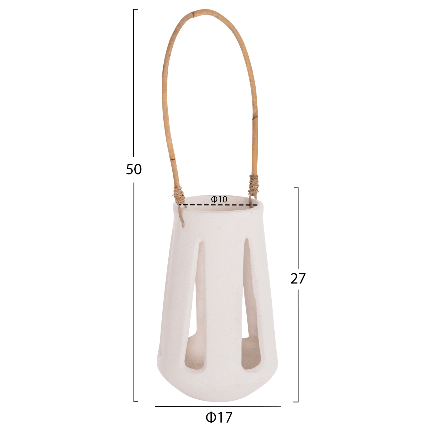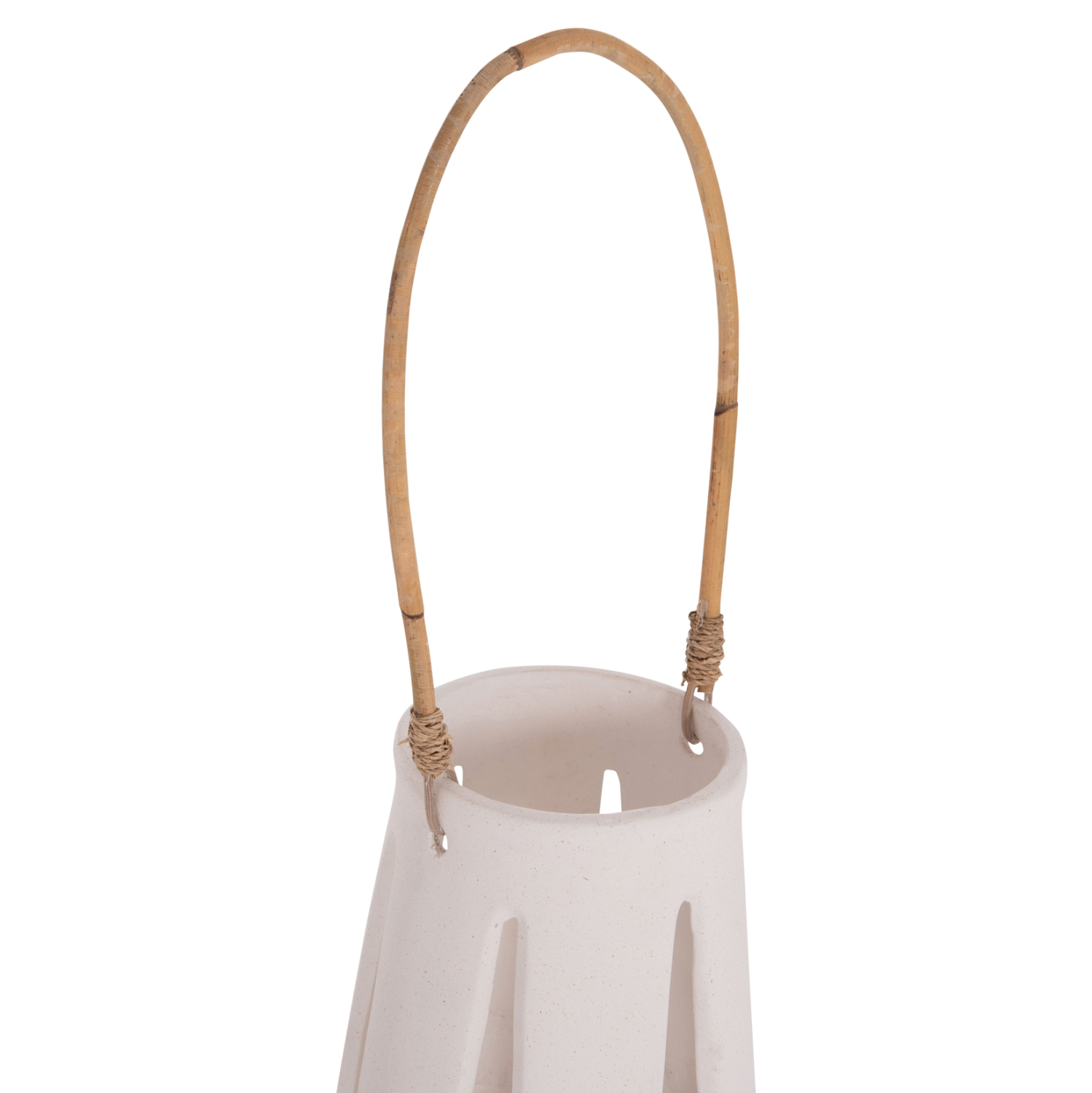 Το επιτραπέζιο διακοσμητικό φανάρι ERANTYL είναι κατασκευασμένο από Fiber Cement σε ΛΕΥΚΟ χρώμα και διαθέτει χερούλι από φυσικό rattan για εύκολη μεταφορά. Το Fiber Cement ΔΕΝ είναι εύφλεκτο, που σημαίνει ότι μπορείτε να τοποθετήσετε αρκετά είδη κεριών, ωστόσο συνιστάται ΠΑΝΤΑ αυτό να γίνεται με μεγάλη προσοχή.