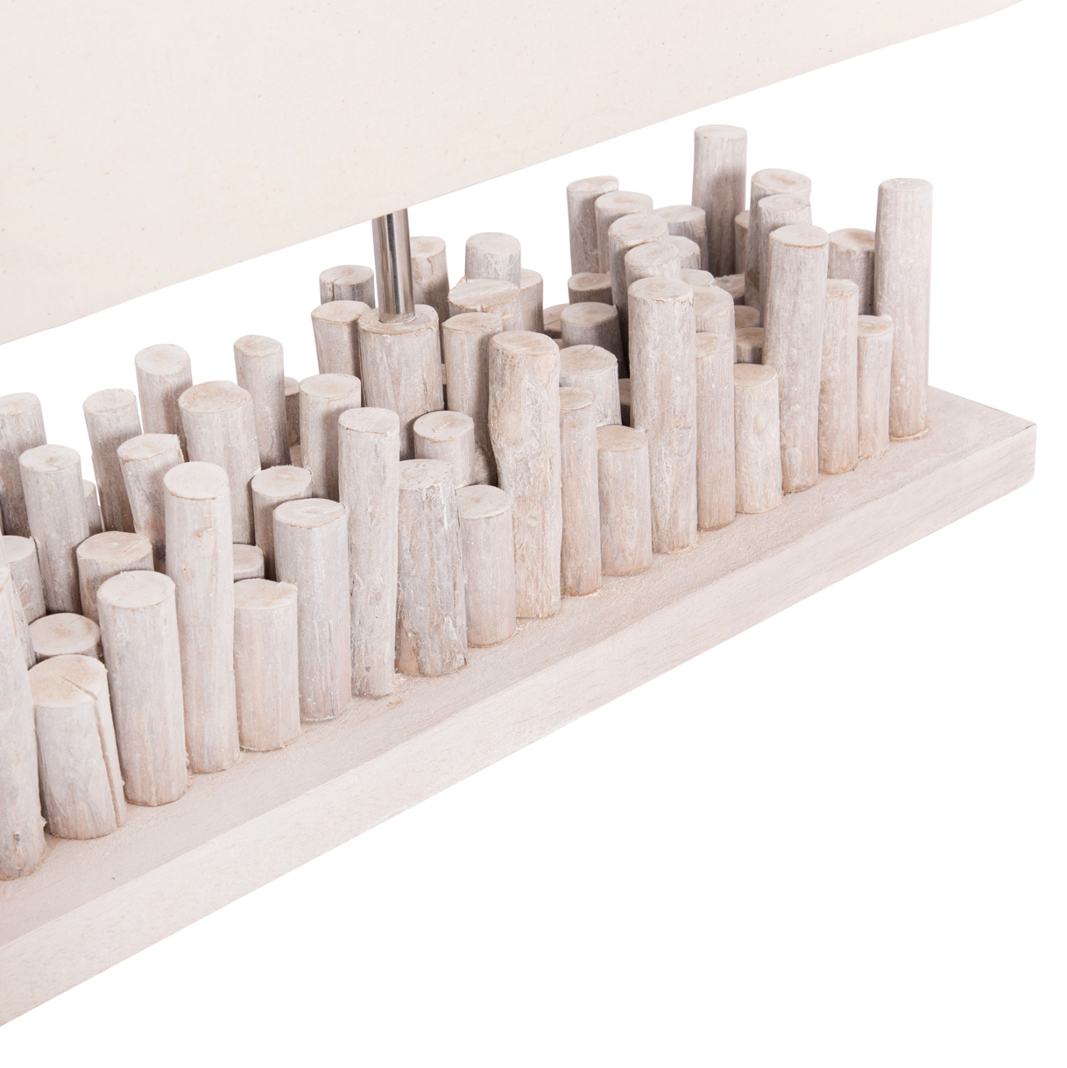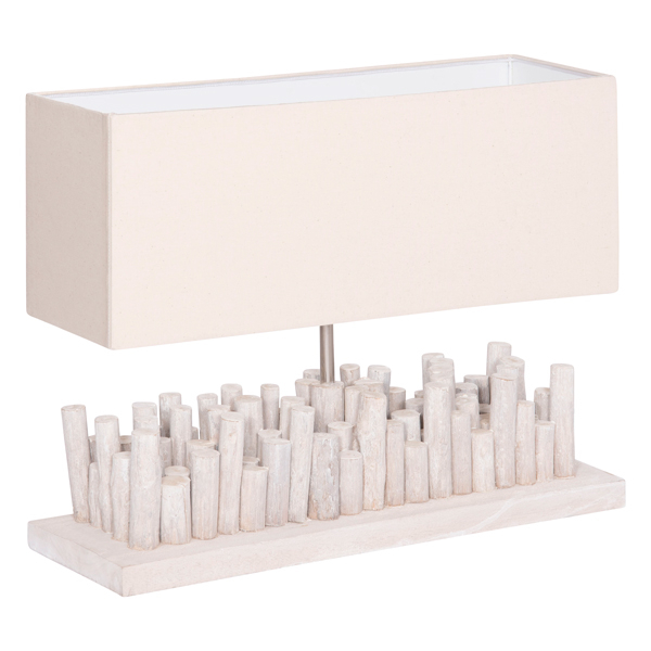 Φωτίστε και ταυτόχρονα διακοσμήστε τον χώρο που επιθυμείτε με το ιδιαίτερο επιτραπέζιο φωτιστικό TWIGGY σε ορθογώνια υλοποίηση. Η βάση αποτελείται από κομμάτια driftwood σε ΛΕΥΚΟ χρώμα που πλαισιώνουν την μεταλλική μπάρα η οποία υποστηρίζει το ΛΕΥΚΟ καπέλο που είναι κατασκευασμένο από βαμβακερό ύφασμα με επικάλυψη PVC. To φωτιστικό μπορεί να χρησιμοποιηθεί σε καφέ, εστιατόρια, ξενοδοχεία, ακόμα και στο σπίτι, δίνοντας μια αίσθηση πολυτέλειας και ρουστίκ οικειότητας.