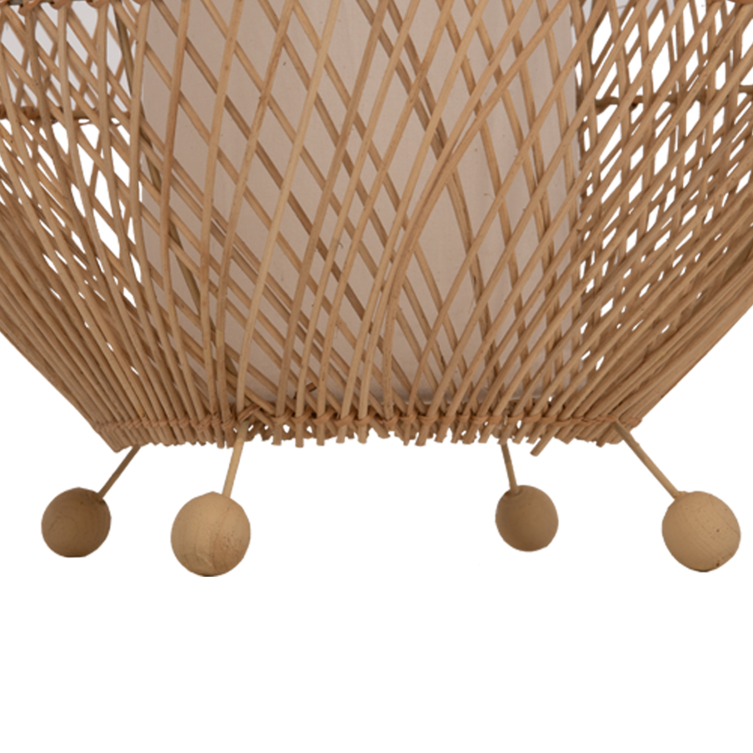 Το φωτιστικό είναι κατασκευασμένο από εξαιρετικής ποιότητας RATTAN. Το Rattan είναι το καλύτερο και το πιο ευρέως χρησιμοποιούμενο φυσικό υλικό για διάφορες κατασκευές. Το Rattan που καλλιεργείται στην Ν.Α. Ασία είναι το ποιοτικότερο και ανθεκτικότερο υλικό από παρόμοια που καλλιεργούνται σε άλλες περιοχές. Με περισσότερα από 600 διαφορετικά είδη, το RATTAN μπορεί να διακριθεί ως ένα ισχυρό ινώδες φυτό που μοιάζει με το μπαμπού και χρησιμοποιείται για ευρέως επειδή είναι ελαφρύ, ανθεκτικό, εύκαμπτο και ελκυστικό.