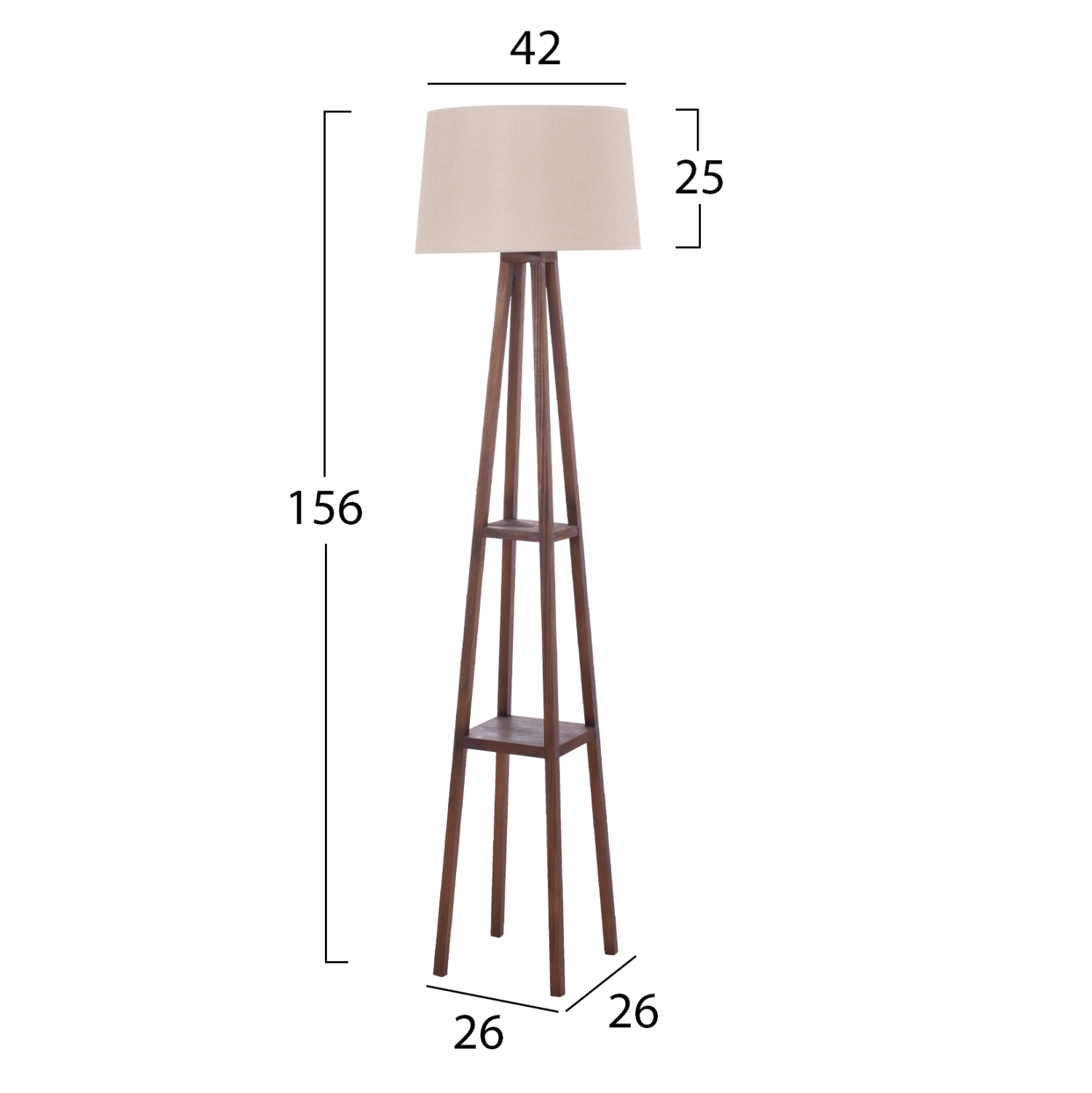 HM7695.01- φωτιστικό δαπέδου —-Ανακαλύψτε ένα μοναδικό φωτιστικό δαπέδου σε στυλ ρουστίκ που θα σας συναρπάσει. Διαθέτει ξύλινο σκελετό σε καρυδί χρώμα με λεπτό πυραμιδωτό σχήμα με δύο ραφάκια, και το ύψος αλλά και όλη η παρουσία του είναι επιβλητική. Το κυλινδρικό καπέλο είναι σε ΜΠΕΖ χρώμα και διαχέει το φως γλυκά δημιουργώντας την ατμόσφαιρα που πάντα φανταζόσασταν για τον χώρο σας, έτσι ώστε να φτιάξετε την δική σας γωνιά χαλάρωσης ή ακόμα και διακόσμησης. Διότι το φως, σημαίνει κάτι περισσότερο από ένα φωτιστικό. Σημαίνει διακόσμηση, ατμόσφαιρα, τέχνη, μεράκι, και φυσικά επιστήμη.