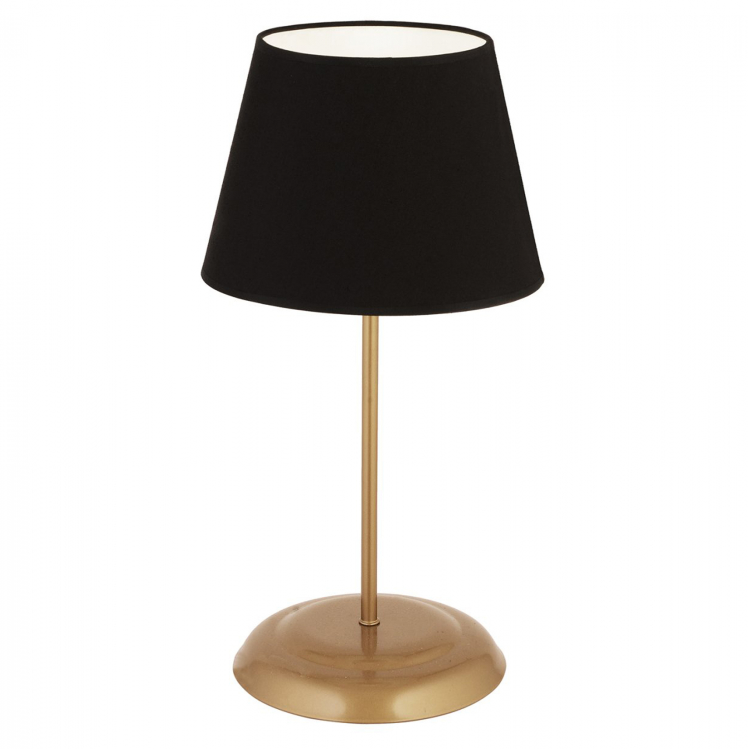 Επιτραπέζιο φωτιστικό, σε χρυσή απόχρωση με μαύρο καπέλο.