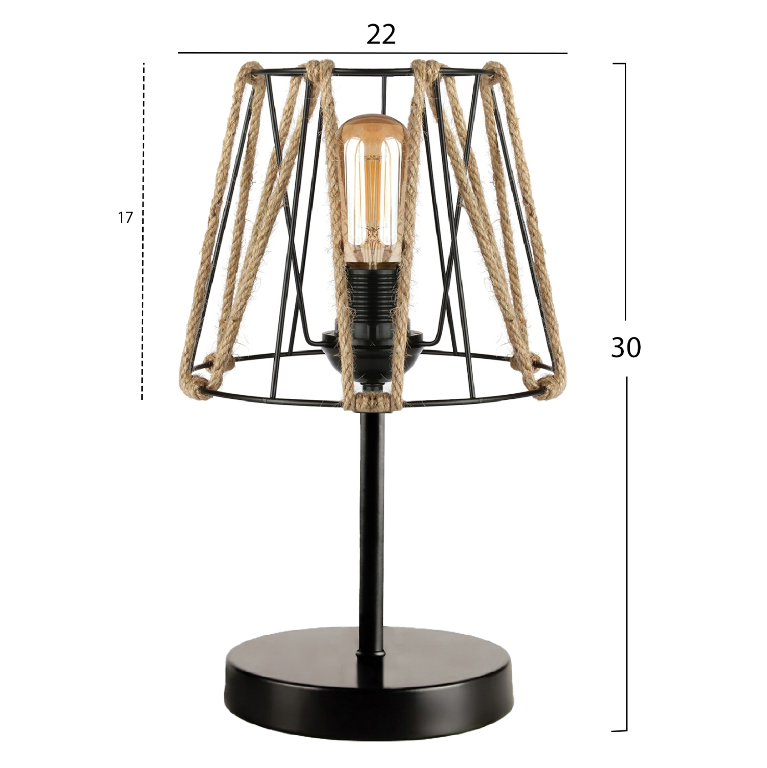 Το φωτιστικό είναι κατασκευασμένο από μέταλλο και σχοινί. Η μεταλλική βάση και η κολώνα προσφέρουν κλασική αντοχή και ανθεκτικότητα, ενώ το σχοινί είναι γνήσιο χωρίς προσμίξεις συνθετικών ινών.