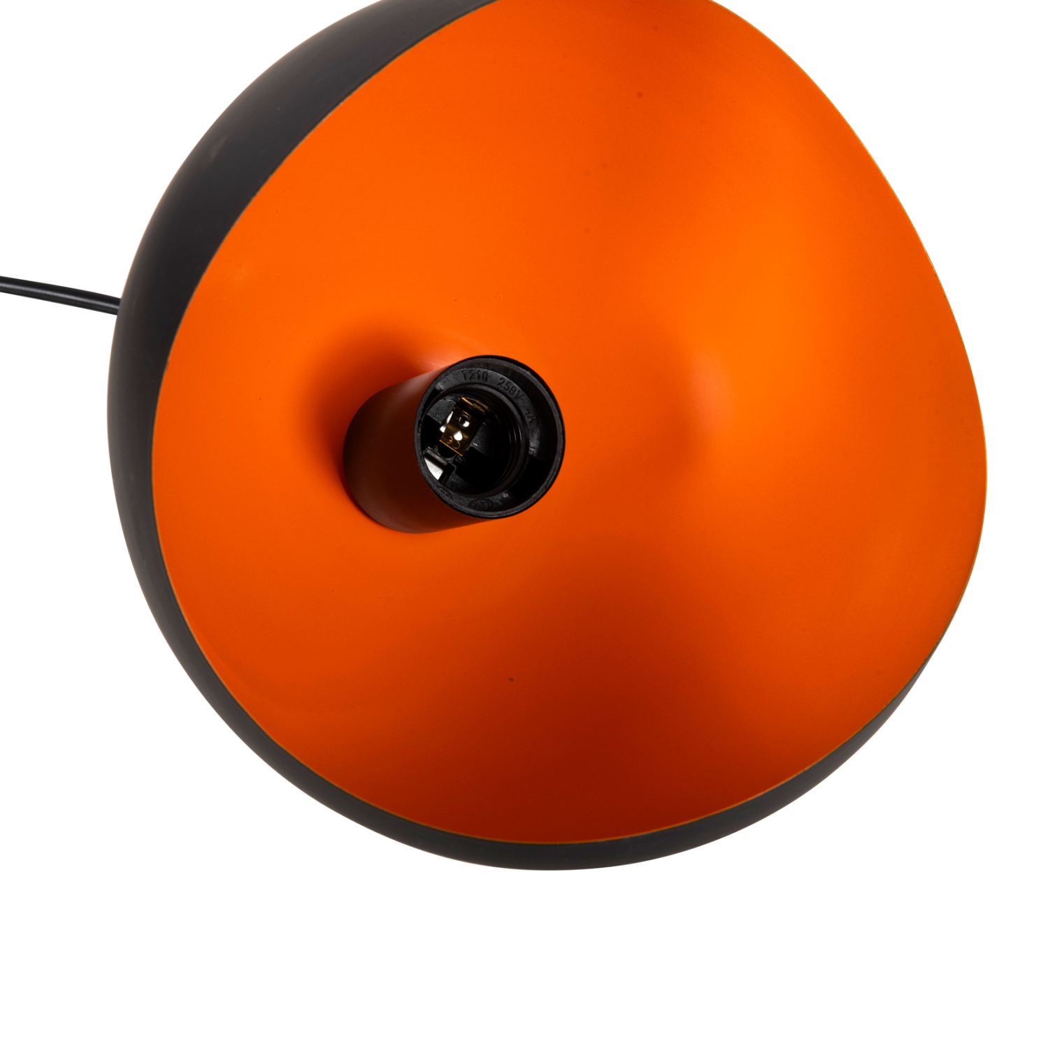 Αφήστε το φως να απλωθεί στον χώρο με ένα μοντέρνο και όμορφο κρεμαστό 3-φωτο οροφής, ολοκληρώνοντας την διακόσμησή σας. Τα συμπαγή σφαιρικά ΜΑΥΡΑ μεταλλικά καπέλα με ΠΟΡΤΟΚΑΛΙ εσωτερικό σε μοντέρνο design με καμπύλες σε διαφορετικά ύψη, θα δώσουν μια νέα εικόνα στον χώρο σας.