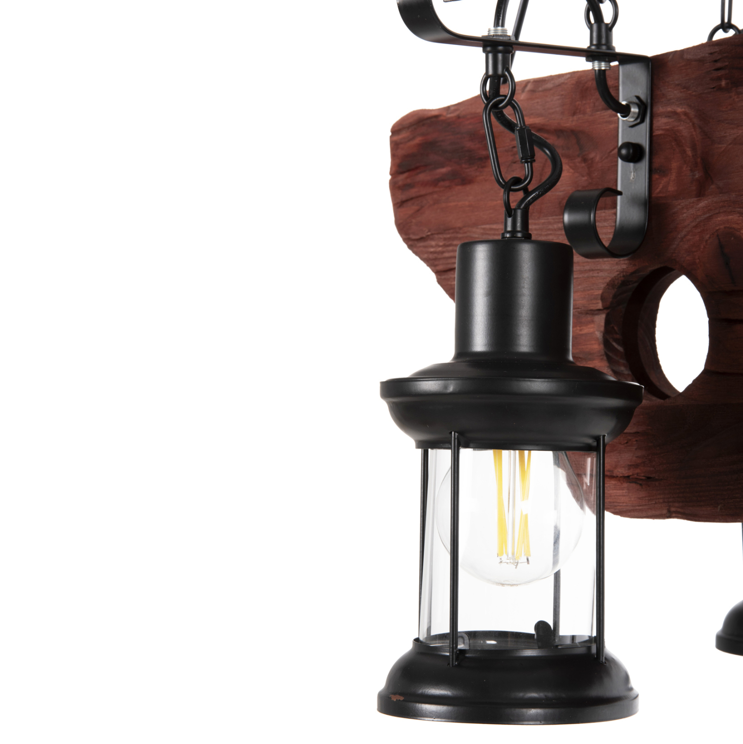 Ανακαλύψτε το εντυπωσιακό 6-φωτο φωτιστικό οροφής HM4117. Ένα φωτιστικό που θα αποτελέσει το κέντρο του ενδιαφέροντος χάρη στο εντυπωσιακό και εμπνευσμένο του design. Τα 6 φαναράκια που περιέχουν τους λαμπτήρες κρέμονται με όμορφες μεταλλικές κρεμάστρες από μια ξύλινη πλάκα με την μορφή πλοίου, η οποία με την σειρά της κρέμεται από την οροφή με αλυσίδες.