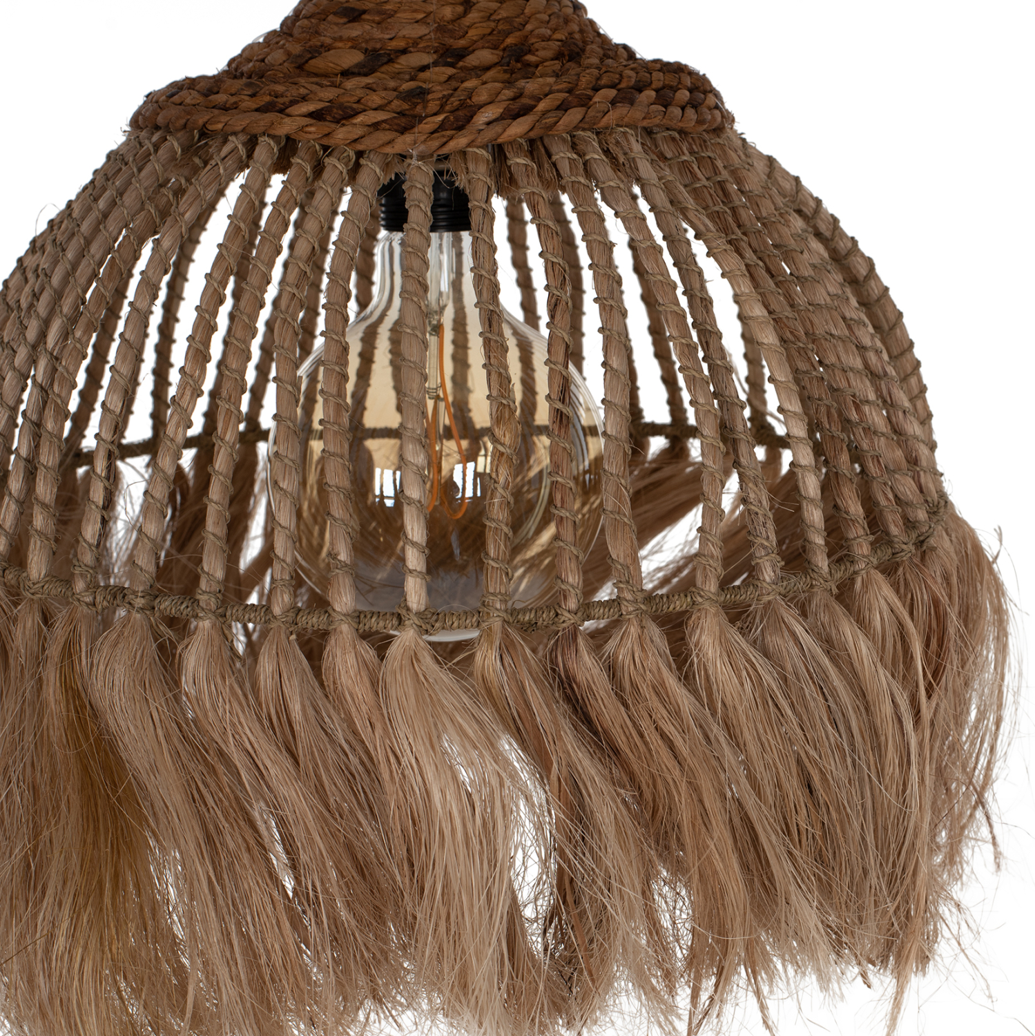 Hm7751- Kρεμαστό φωτιστικό—- Αν επιθυμείτε να διακοσμήσετε το χώρο σας με ένα φωτιστικό σε boho στυλ, αυτό είναι η πιο σωστή επιλογή. Είναι ένα μονόφωτο φωτιστικό για επαγγελματική χρήση, με «καπέλο» σε σχήμα καμπάνας φτιαγμένο από σκοινί, υψηλής ποιότητας και αντοχής στο χρόνο. Το ιδιαίτερο χαρακτηριστικό, όμως, αυτού του φωτιστικού είναι ότι το «καπέλο» καταλήγει σε κρόσια, επιτείνοντας ακόμα περισσότερο το boho στυλ.