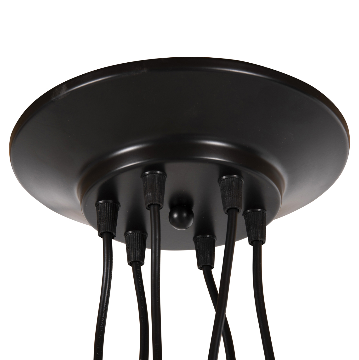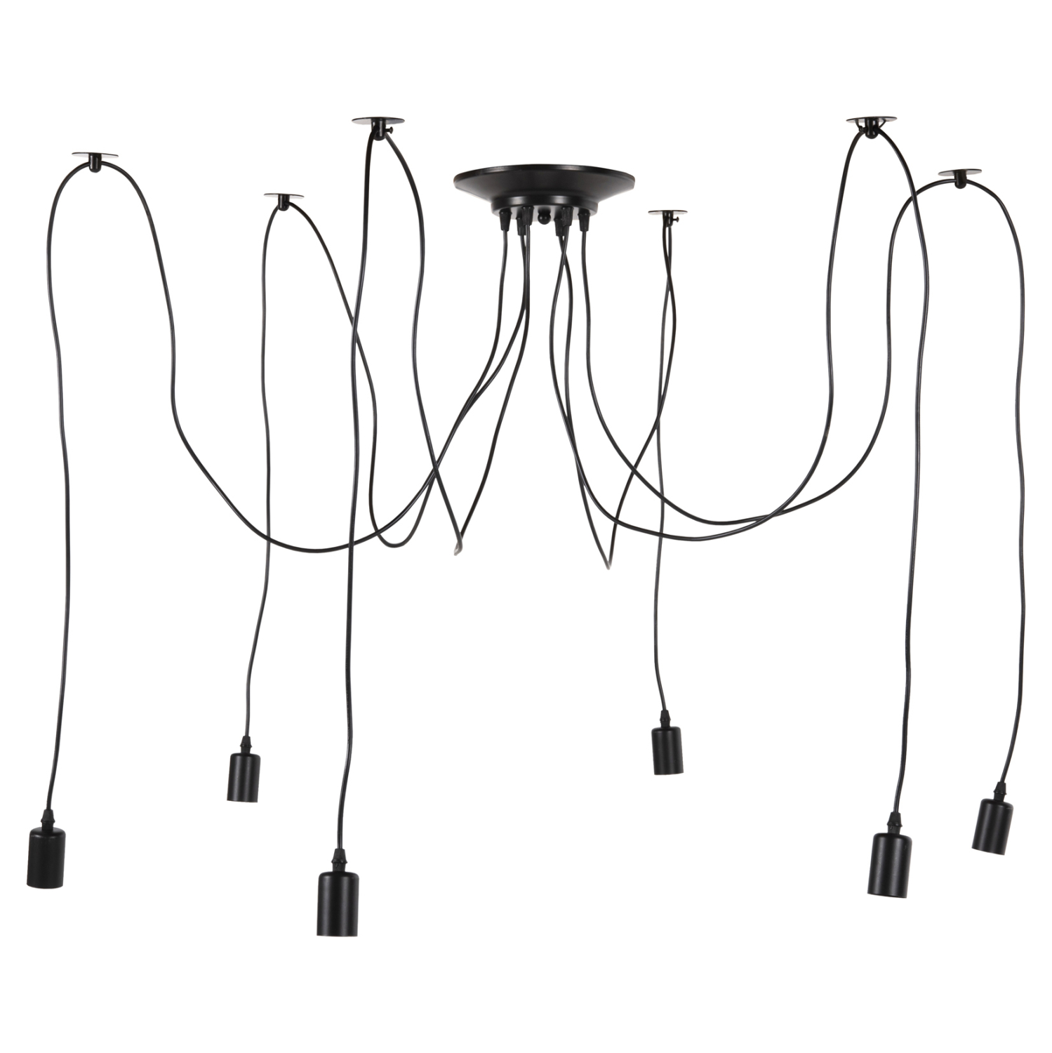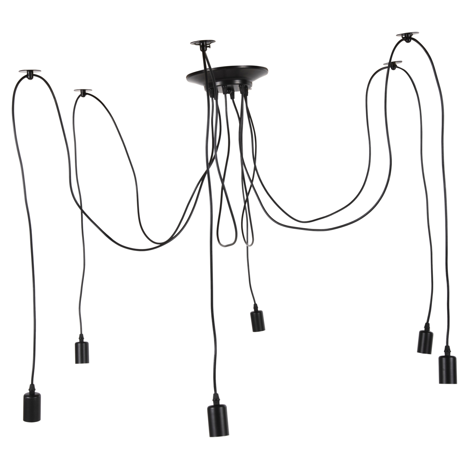 Το πολύφωτο ΗΜ4175 είναι μια ακόμα προσθήκη στην γκάμα μας. Έχει μαύρη μεταλλική βάση οροφής, από την οποία κρέμονται 6 μαύρα μακριά καλώδια που καταλήγουν σε 6 μαύρα ντουί. Αυτά τα καλώδια μπορείτε να τα αναρτήσετε με διάφορους τρόπους από την οροφή δίνοντας το δικό σας στυλ στον χώρο. Αυτό το πληθωρικό πολύφωτο θα φωτίσει με άπλετο φως μεγάλους χώρους και θα εντυπωσιάσει με το απλότητά του.