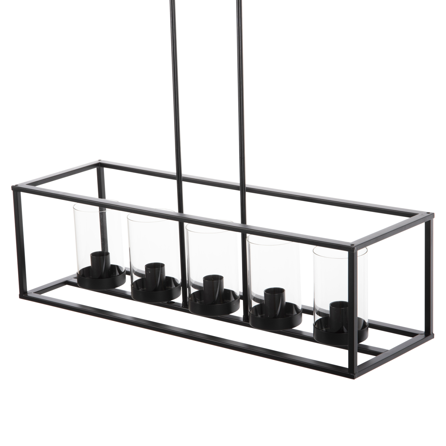 Το HΜ4082 είναι μια από τις νέες προσθήκες στην γκάμα μας και είναι εντυπωσιακό. Τα 5 φώτα του σε σειρά βρίσκονται σε γυάλινες θήκες σαν ποτήρια. Αυτές οι θήκες είναι τοποθετημένες σε μια ΜΑΥΡΗ ορθογώνια μεταλλική κατασκευή σαν προθήκη, η οποία κρέμεται από την οροφή με 2 μεταλλικές ράβδους. Πρόκειται για ένα εντυπωσιακό φωτιστικό που θα προκαλέσει τον θαυμασμό όλων!
