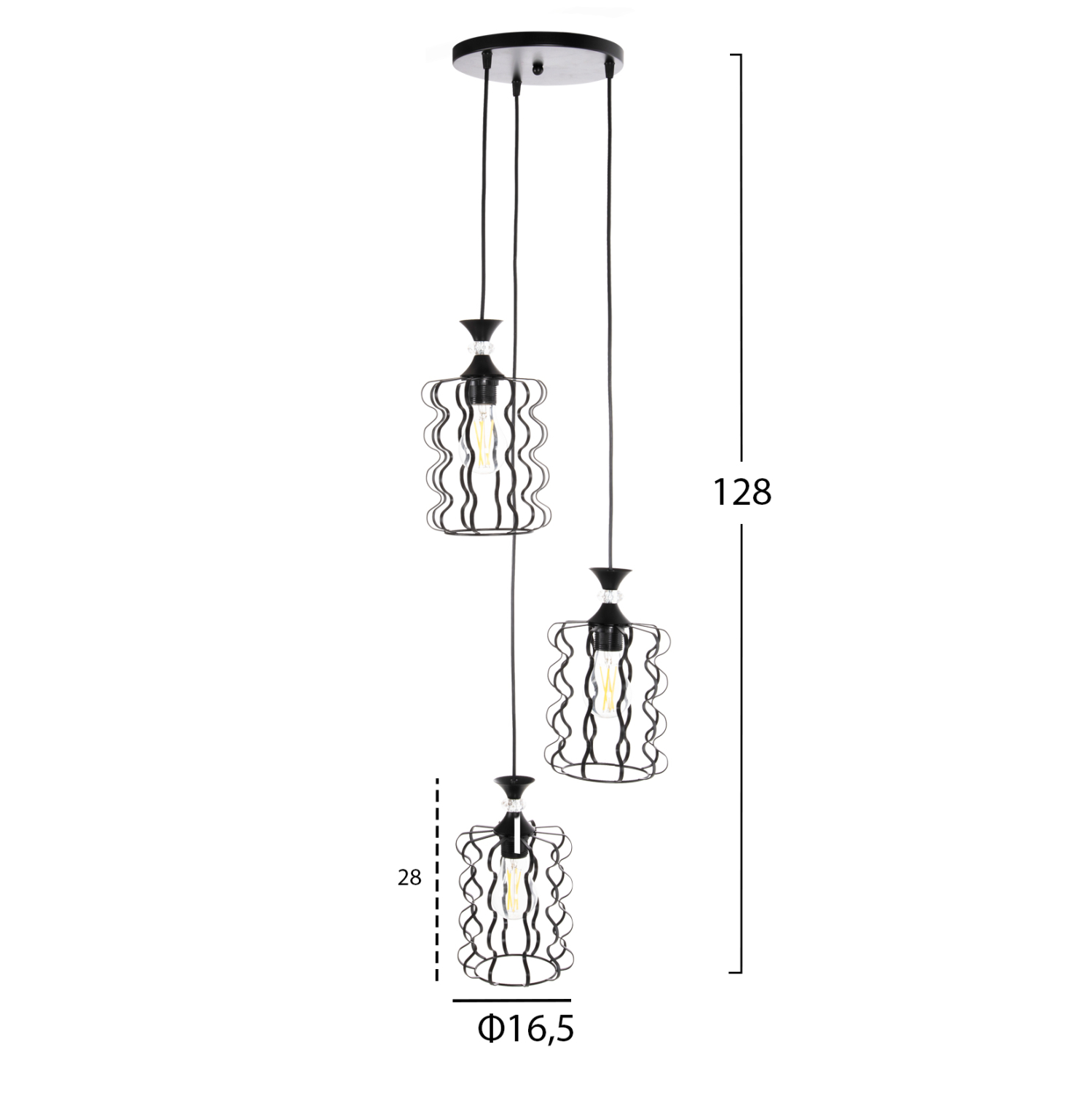 ΦΩΤΙΣΤΙΚΟ ΟΡΟΦΗΣ ΚΡΕΜΑΣΤΟ HM4089 3-ΦΩΤΟ ΜΑΥΡΑ ΜΕΤΑΛΛΙΚΑ ΚΑΠΕΛΑ Φ34×128Υεκ.