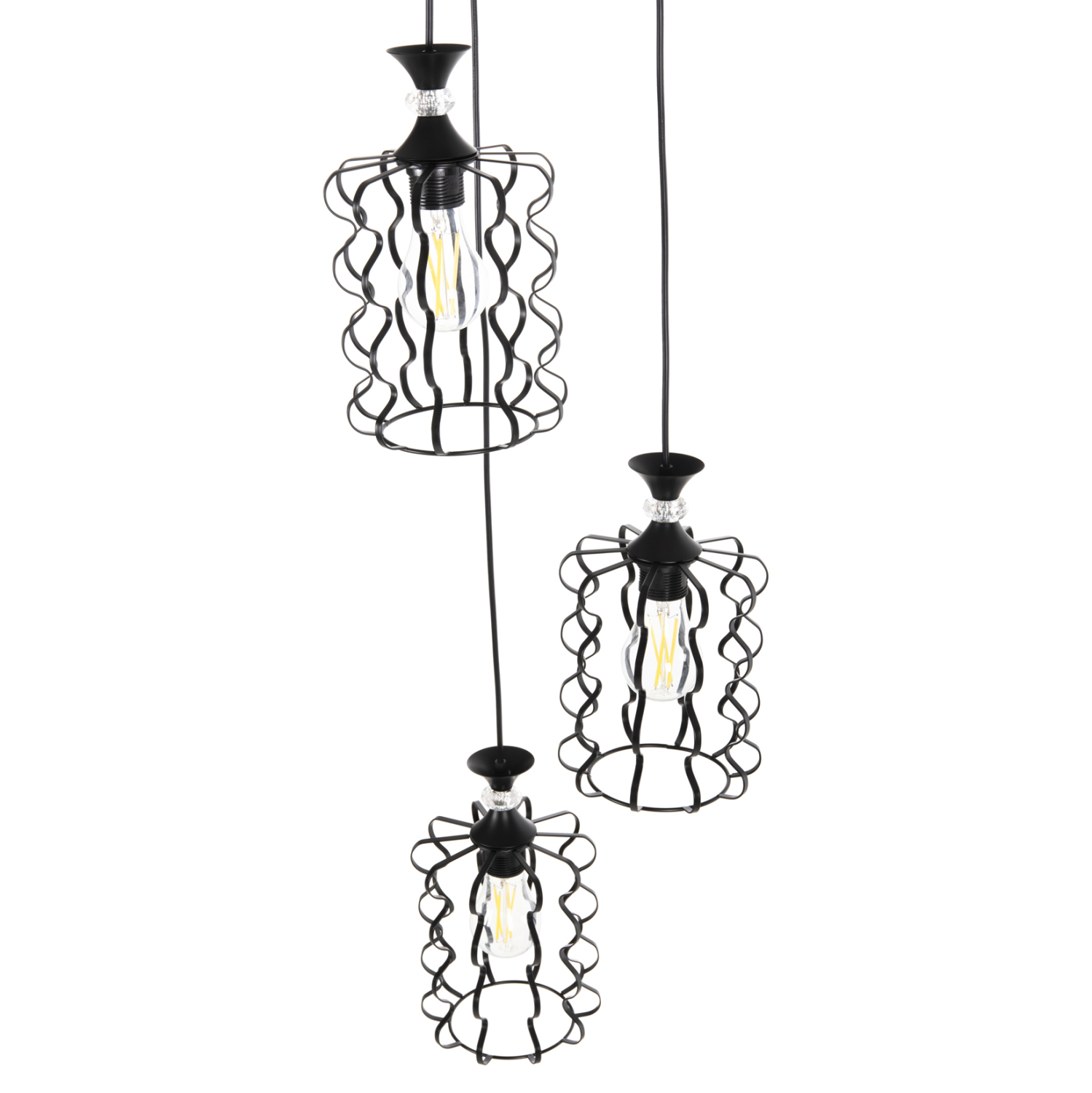 Ανακαλύψτε αυτό το νέο μας κρεμαστό 3-φωτο οροφής και ολοκληρώστε την διακόσμησή σας. Πρόκειται για ένα φωτιστικό με ΜΑΥΡΑ μεταλλικά καπέλα σε μοντέρνα υλοποίηση και αποτελεί την τελευταία τάση στα φωτιστικά οροφής.