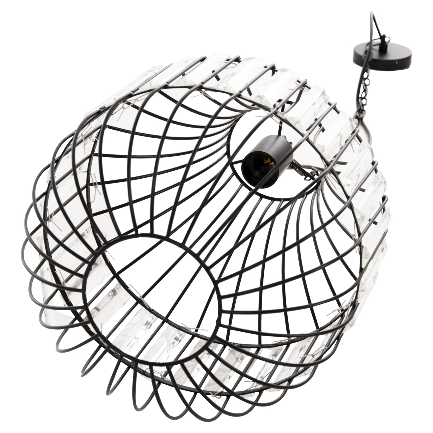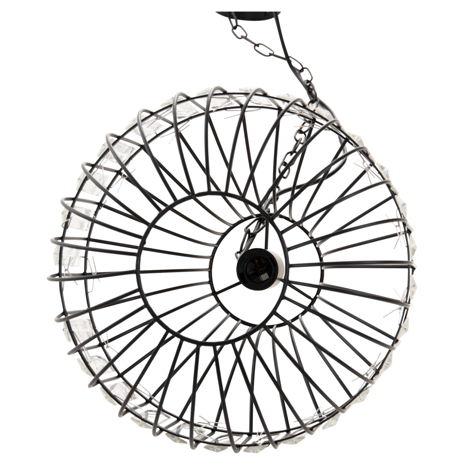 Γνωρίστε ένα ακόμα πρωτότυπο και φινετσάτο κρεμαστό φωτιστικό οροφής από την καινούργια γκάμα μας, και ολοκληρώστε την διακόσμησή σας. Πρόκειται για ένα μαύρο μεταλλικό φωτιστικό με γυάλινες λεπτομέρειες, που θα δώσει νέα εικόνα στον χώρο σας.