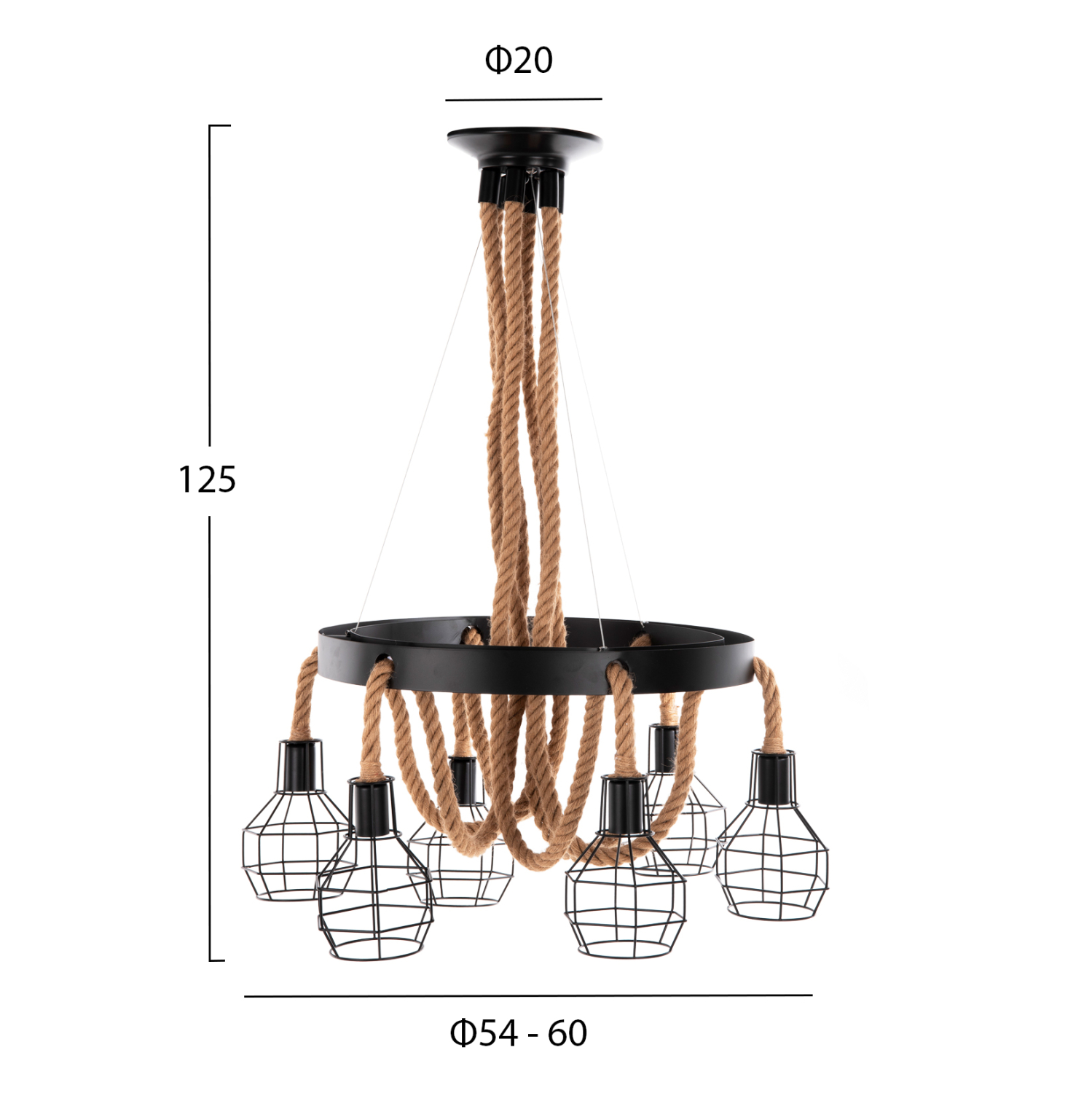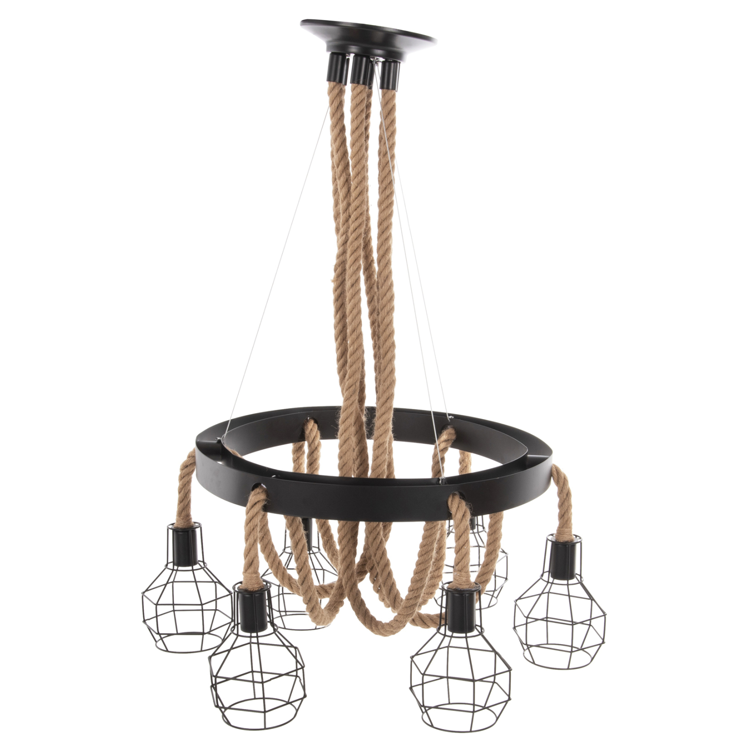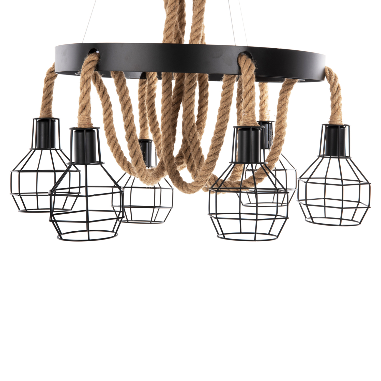 Ανακαλύψτε το νέο μας 6-φωτο κρεμαστό φωτιστικό οροφής, και μην διστάσετε να το εντάξετε στην διακόσμησή σας. Ο συνδυασμός σχοινιού και μετάλλου είναι ξεχωριστός, ενώ οι 6 λαμπτήρες σε μεταλλικούς κλωβούς θα «ρίξουν» φως σε κάθε γωνιά του δωματίου. Ιδανικό τόσο για το σπίτι, όσο και για επαγγελματικούς χώρους.