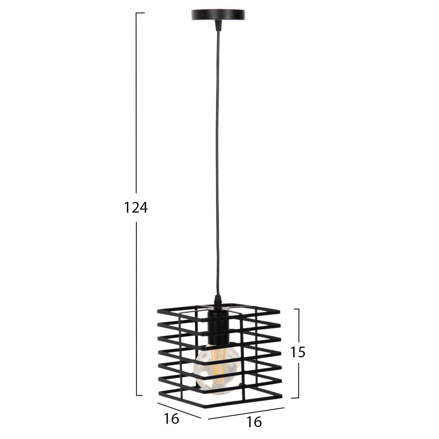 ΦΩΤΙΣΤΙΚΟ ΟΡΟΦΗΣ ΚΡΕΜΑΣΤΟ HM4131 ΜΑΥΡΟ ΜΕΤΑΛΛΙΚΟ ΚΑΠΕΛΟ 16x16x124Υεκ.