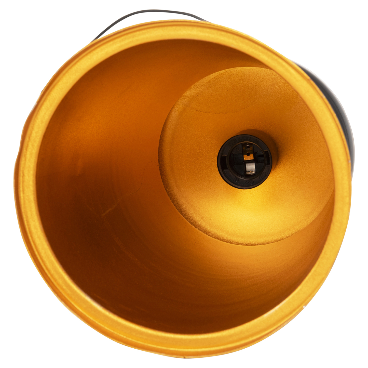 Ανακαλύψτε αυτό το νέο μας κρεμαστό φωτιστικό οροφής και ολοκληρώστε την διακόσμησή σας. Πρόκειται για ένα φωτιστικό με ΜΑΥΡΟ μακρόστενο κυλινδρικό καπέλο ΑΛΟΥΜΙΝΙΟΥ με χρυσή επιφάνεια στην εσωτερική πλευρά του φωτιστικού.