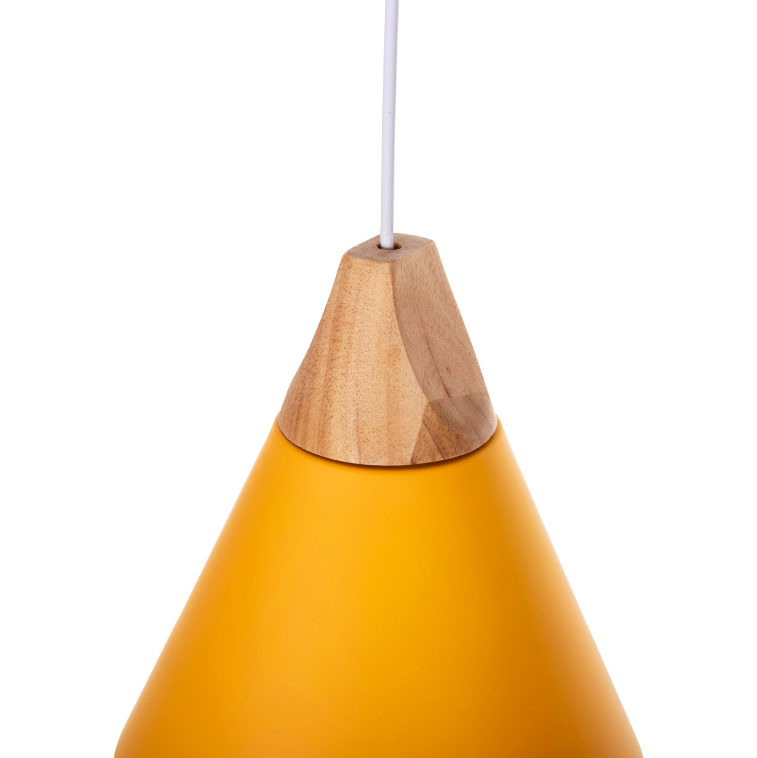 Ανακαλύψτε αυτό το νέο μας κρεμαστό φωτιστικό οροφής και ολοκληρώστε την διακόσμησή σας. Πρόκειται για ένα φωτιστικό με ΚΙΤΡΙΝΗ μεταλλικό καπέλο σε σχήμα καμπάνας με λεπτομέρεια ξύλου στην κορυφή του φωτιστικού. Αισθητικά, ολοκληρώνεται με το λευκό καλώδιο κρέμασης και την λευκή βάση οροφής, και αποτελεί την τελευταία τάση στα φωτιστικά οροφής.