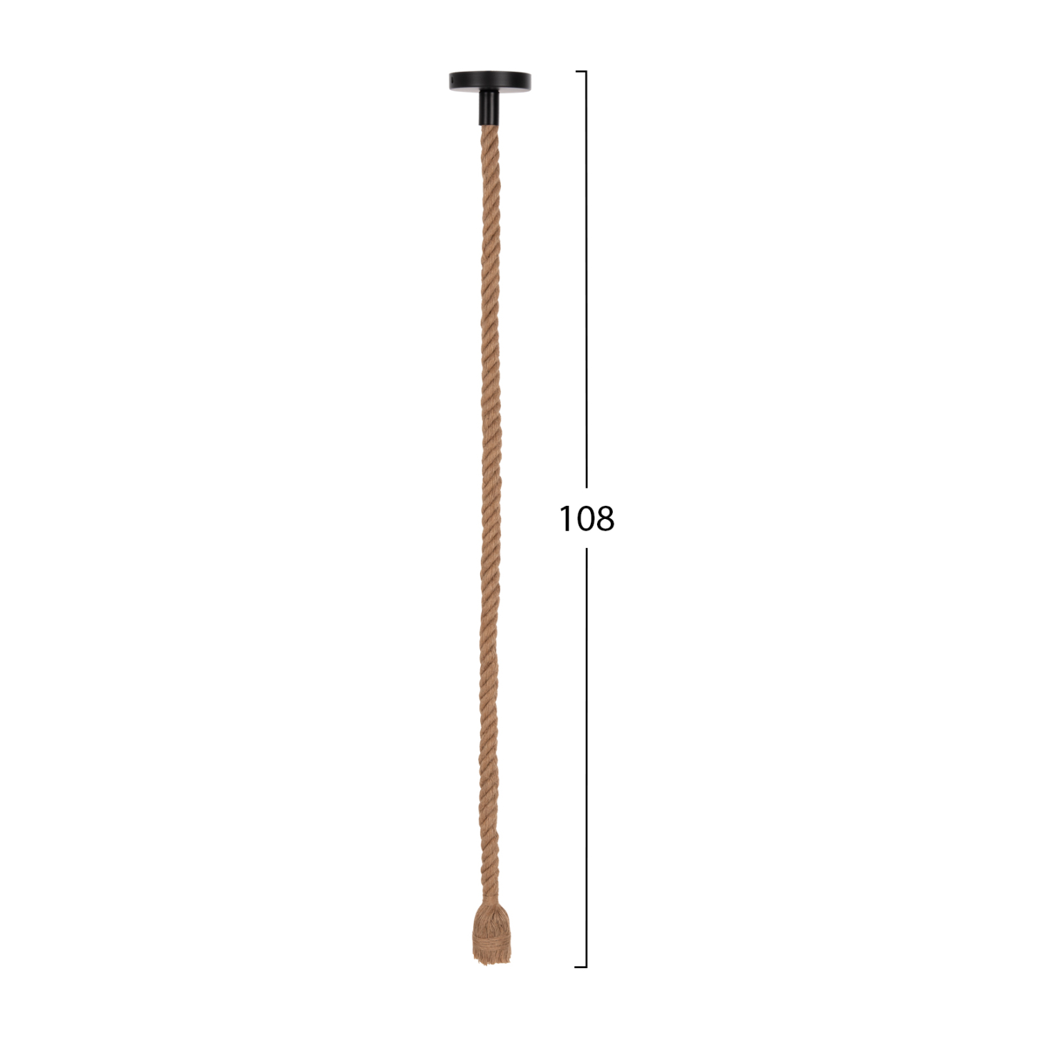 Το φωτιστικό είναι φτιαγμένο από σχοινί ενώ το καπάκι οροφής είναι μεταλλικό.