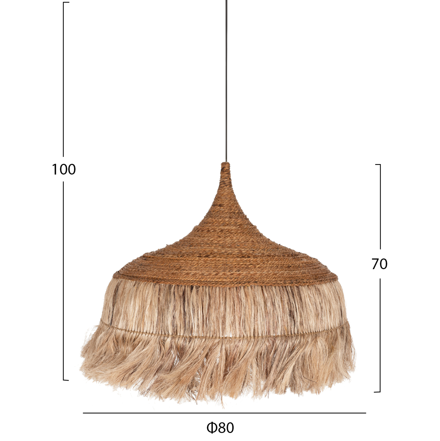 Hm7755- Kρεμαστό φωτιστικό—- Αν επιθυμείτε να διακοσμήσετε το χώρο σας με ένα φωτιστικό σε boho στυλ, αυτό είναι η πιο σωστή επιλογή. Είναι ένα μονόφωτο φωτιστικό για επαγγελματική χρήση, με «καπέλο» σε σχήμα καμπάνας φτιαγμένο από σκοινί, υψηλής ποιότητας και αντοχής στο χρόνο. Το ιδιαίτερο χαρακτηριστικό, όμως, αυτού του φωτιστικού είναι ότι το «καπέλο» στο μεγαλύτερο μέρος του αποτελείται από κρόσια, επιτείνοντας ακόμα περισσότερο το boho στυλ.