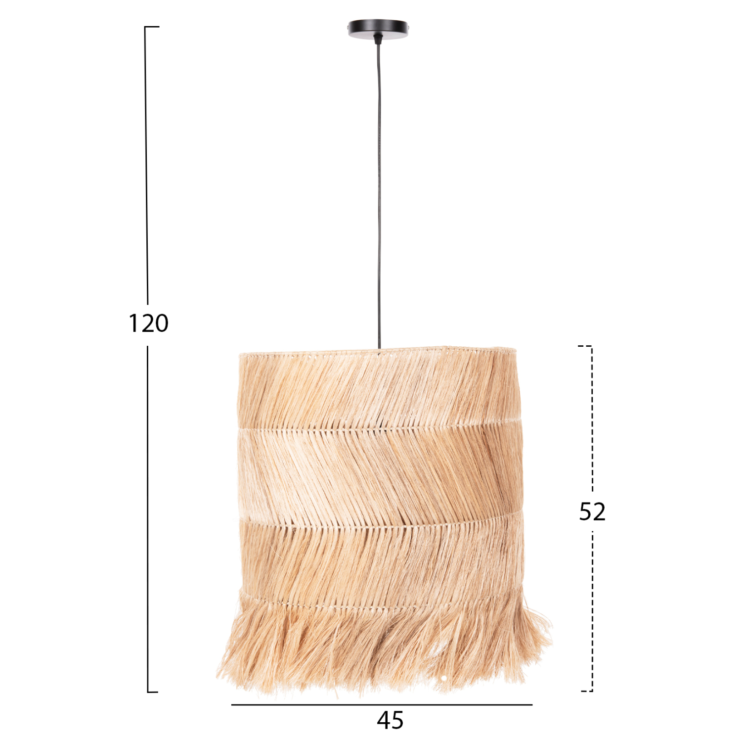 Hm7757- Kρεμαστό φωτιστικό—- Αν επιθυμείτε να διακοσμήσετε το χώρο σας με ένα φωτιστικό σε boho στυλ, αυτό είναι η πιο σωστή επιλογή. Είναι ένα μονόφωτο φωτιστικό με μακρύ κυλινδρικό «καπέλο» φτιαγμένο από ίνες κάνναβης Μανίλας ή αλλιώς αμπακά, σε φυσικό χρώμα (ξανθό) σε 3 σειρές με αντίθετη φορά των ινών και κρόσια στο τελείωμα.