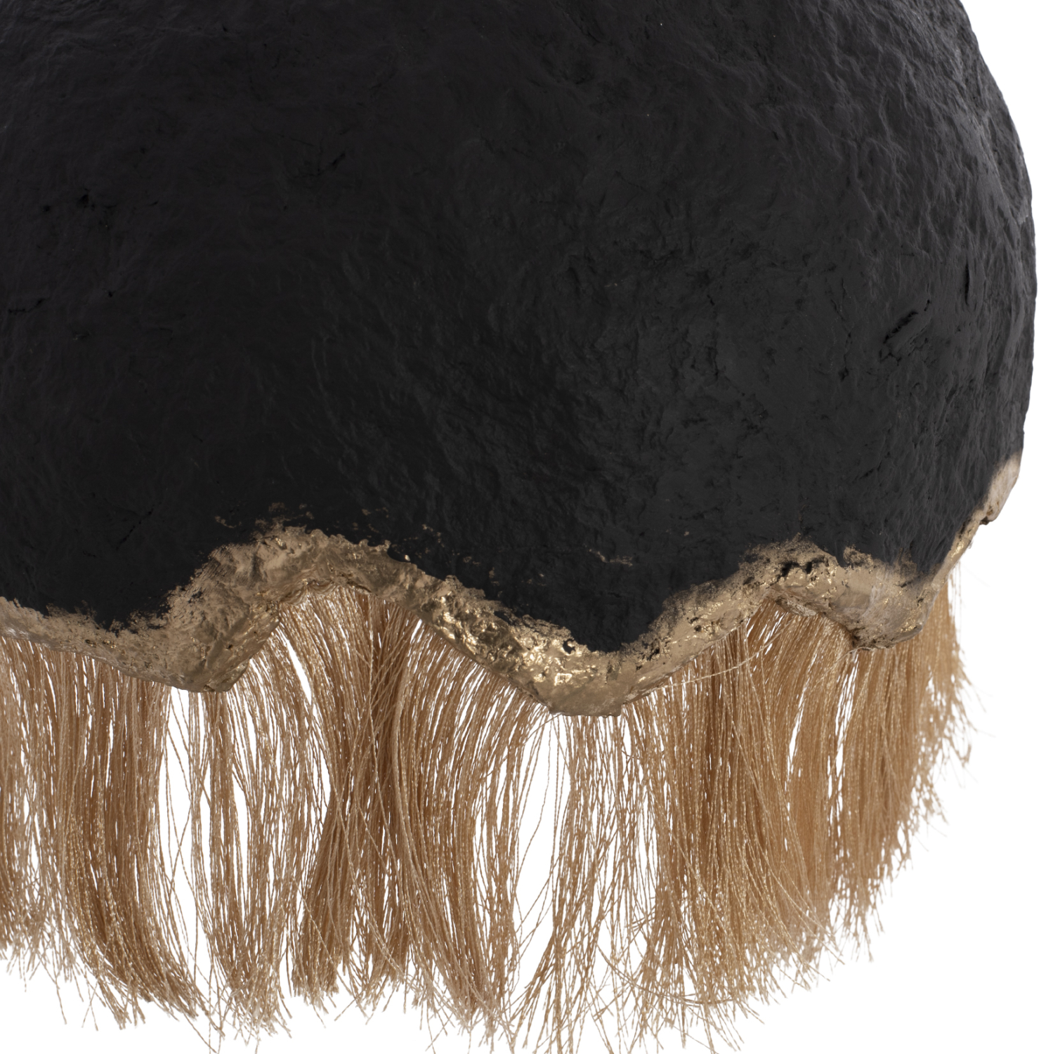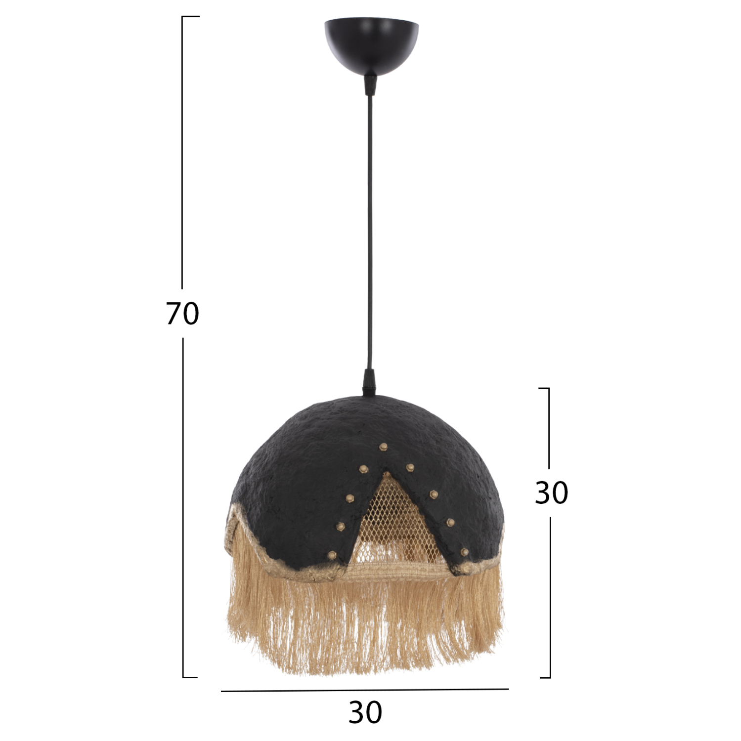 Hm7693.01-κρεμαστό φωτιστικό —-Αφήστε το φως να απλωθεί στον χώρο με ένα πρωτότυπο μονόφωτο οροφής, ολοκληρώνοντας την διακόσμησή σας. Το «καπέλο» του φωτιστικού αποτελείται από ένα σφαιρικό κομμάτι σε ιδιαίτερο ημισφαιρικό σχήμα και είναι η επιτομή του μοντέρνου design. Η διαφορετική «πινελιά» αυτού του κρεμαστού μονόφωτου είναι το χρυσό μεταλλικό πλέγμα στο εσωτερικό μέρος και τα μπεζ κρόσια που ολοκληρώνουν αισθητικά αυτό το πολύ ιδιαίτερο φωτιστικό.