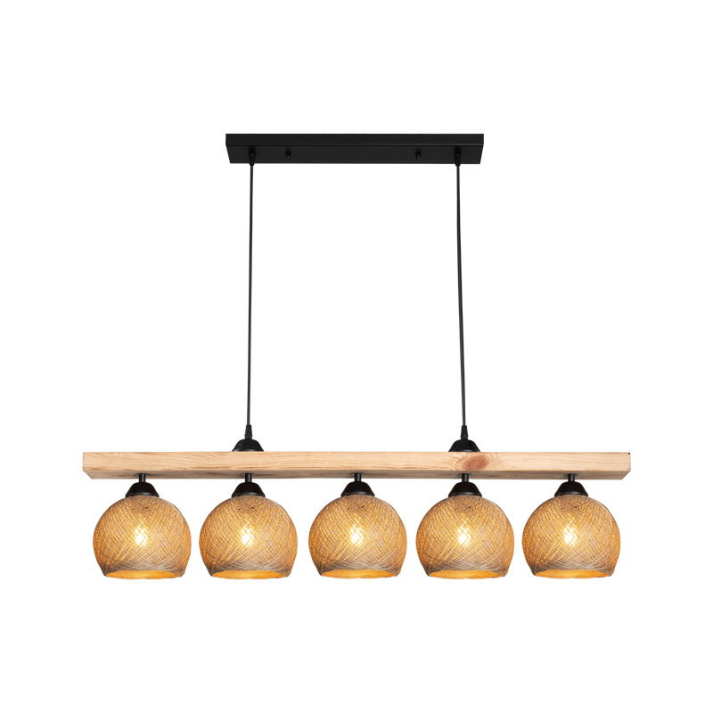 Φωτιστικό οροφής πεντάφωτο Salote pakoworld Ε27 σε καφέ-φυσική απόχρωση 100x18x24εκ