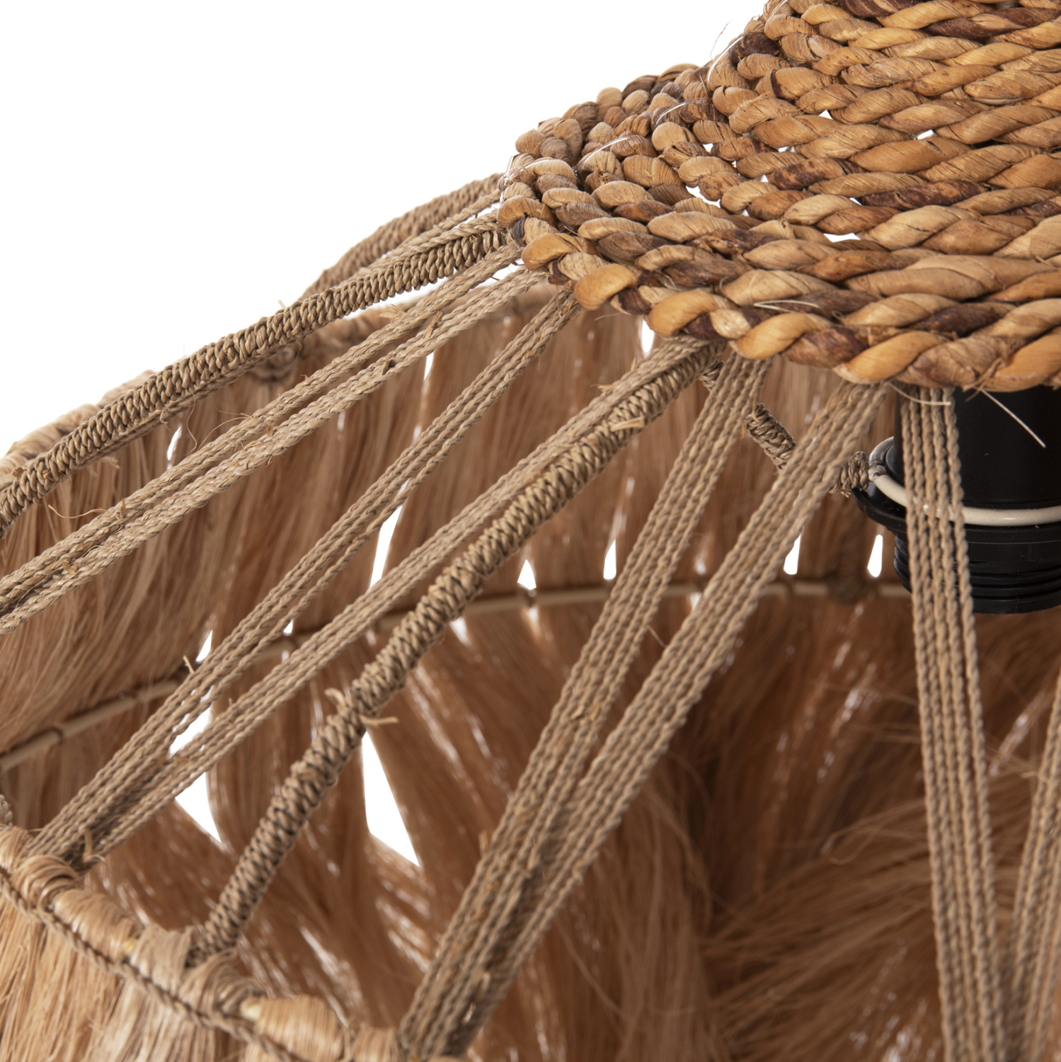Hm7764- Kρεμαστό φωτιστικό—- Αν επιθυμείτε να διακοσμήσετε το χώρο σας με ένα φωτιστικό σε ιδιαίτερο στυλ, αυτό είναι μια χαρακτηριστική επιλογή. Είναι ένα μονόφωτο φωτιστικό με «καπέλο» σε κυλινδρικό σχήμα φτιαγμένο από ίνες κάνναβης Μανίλας σε φυσικό χρώμα. Το ιδιαίτερο χαρακτηριστικό αυτού του φωτιστικού είναι ότι το καπέλο δένεται με το καλώδιο κρέμασης με σχοινιά αφήνοντας όλο το επάνω μέρος ανοιχτό.