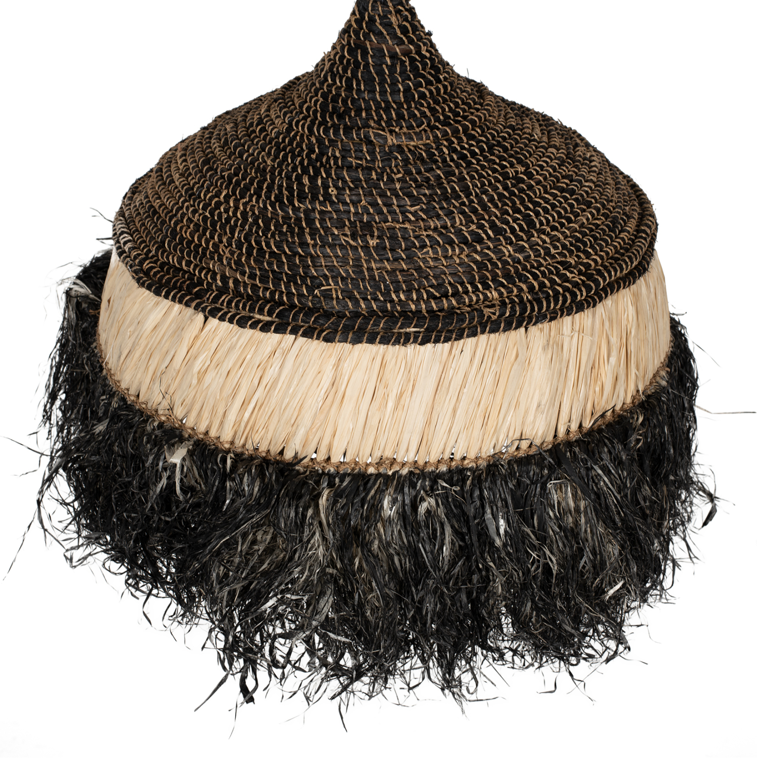 Hm7788- Kρεμαστό φωτιστικό—- Αν επιθυμείτε να διακοσμήσετε το χώρο σας με ένα φωτιστικό σε boho στυλ με εξωτικά υλικά, αυτό είναι μια χαρακτηριστική επιλογή. Είναι ένα μονόφωτο με «καπέλο» σε σχήμα καμπάνας φτιαγμένο από ίνες σιζάλ σε φυσικό χρώμα και ανακυκλωμένες ίνες κάνναβης Μανίλας σε μαύρο χρώμα.