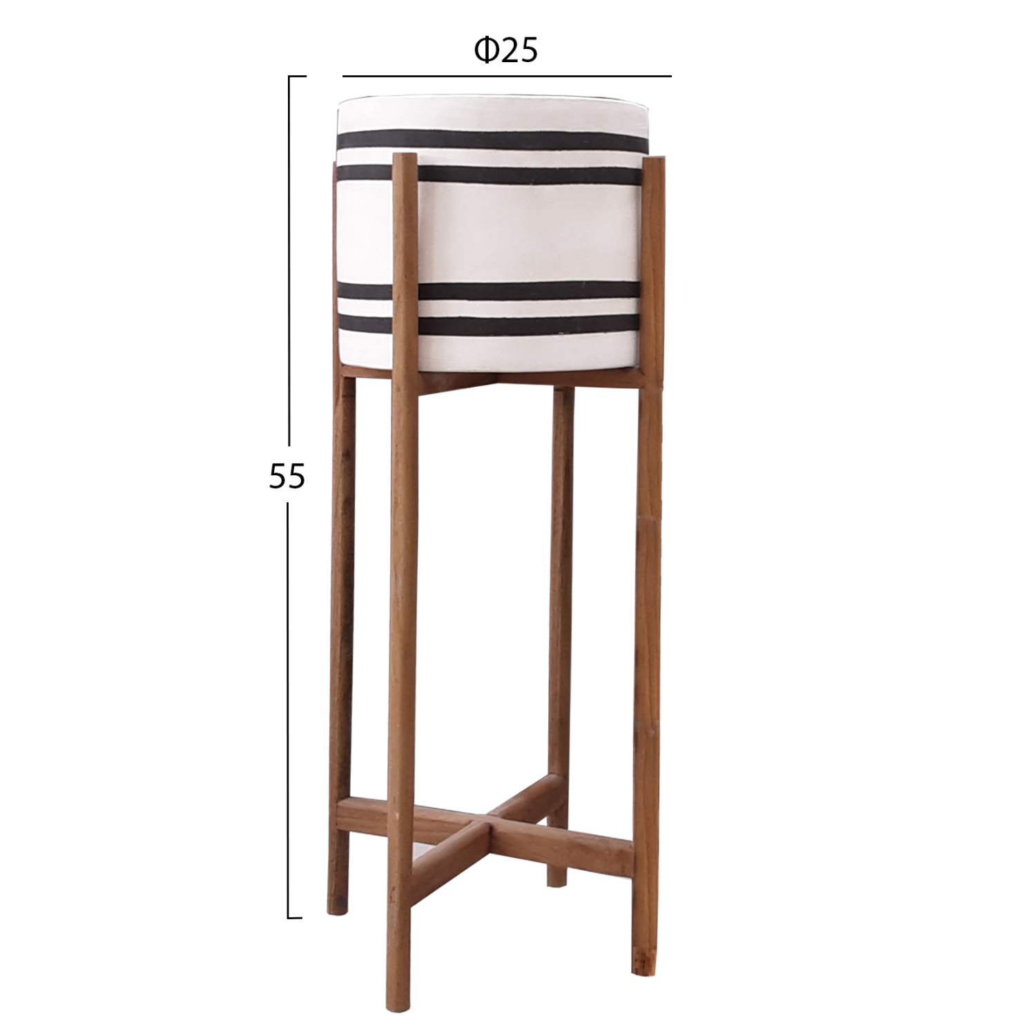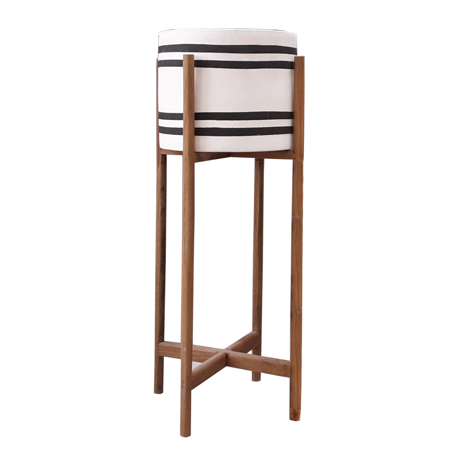 Η γλάστρα εσωτερικού χώρου (κασπό) RENTIL είναι κατασκευασμένη από Fiber Cement σε ΛΕΥΚΟ και ΜΑΥΡΟ χρώμα σε ρίγες. Το ιδιαίτερο χαρακτηριστικό της είναι ότι συνοδεύεται και τοποθετείται σε μια ψηλή χιαστί βάση από ξύλο teak. Συνιστάται η τοποθέτηση εσωτερικού δοχείου εάν πρόκειται να την χρησιμοποιήσετε με νερό!