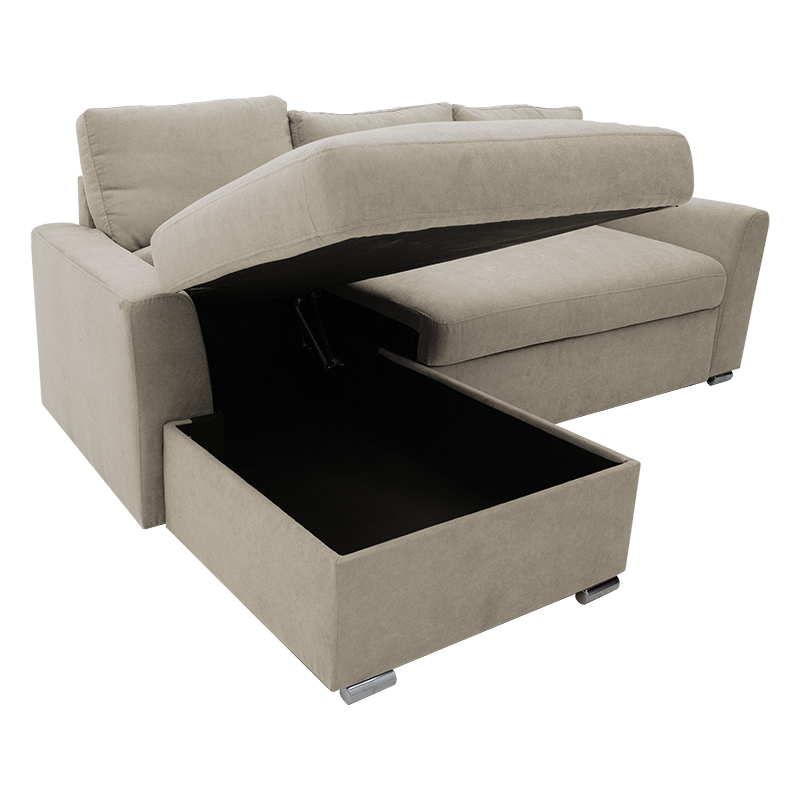 - Φέρει εύχρηστο μηχανισμό που με μία μόνο κίνηση ανασηκώνεται, μετατρέποντας τον καναπέ σε κρεβάτι και το αντίστροφο.