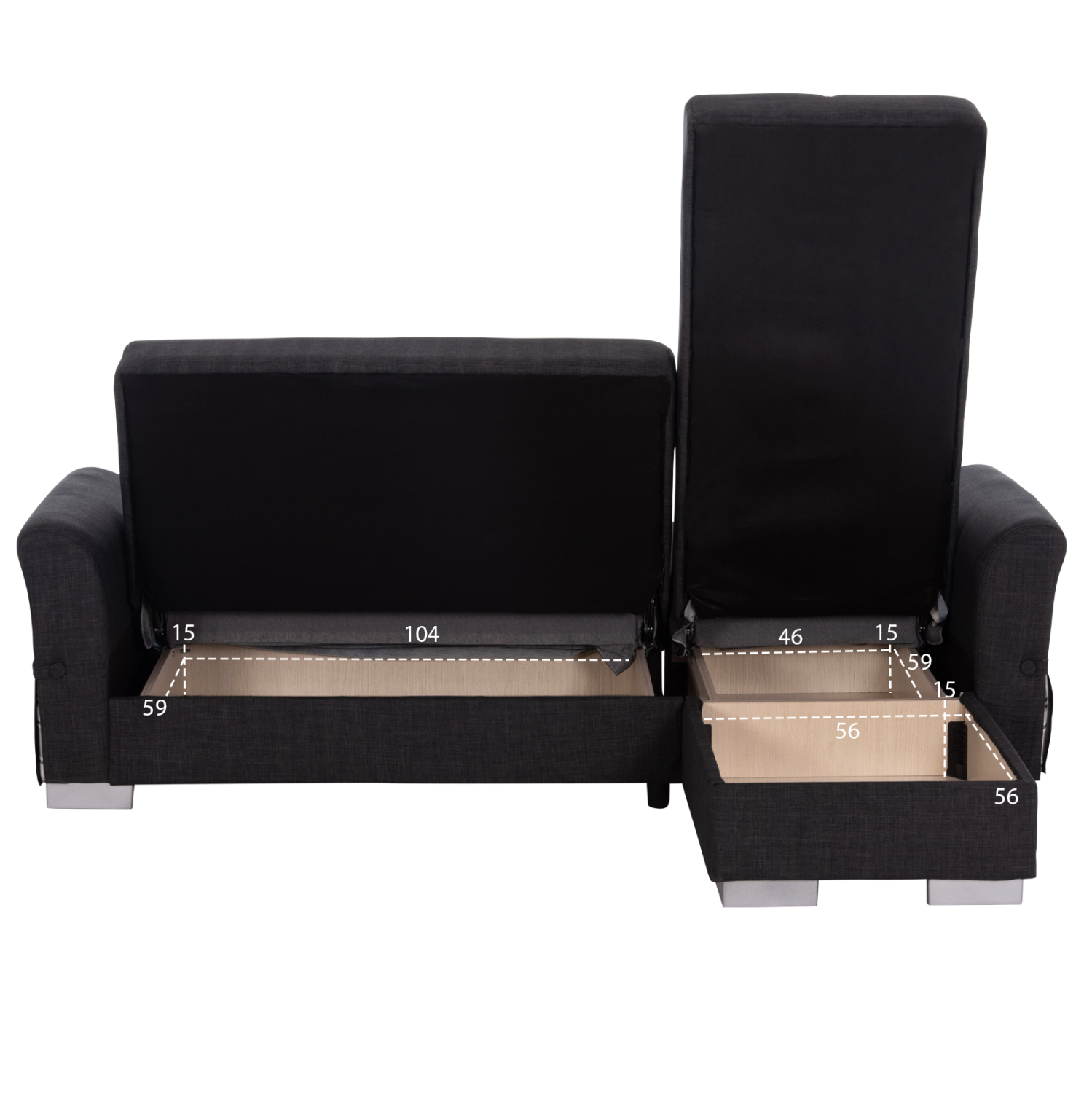 ΓΩΝΙΑΚΟΣ ΚΑΝΑΠΕΣ-ΚΡΕΒΑΤΙ ΜΕ ΑΠΟΘ. ΧΩΡΟ BRONKO HM3291.01 ΑΝΘΡΑΚΙ ΥΦΑΣΜΑ 218x138x77Y