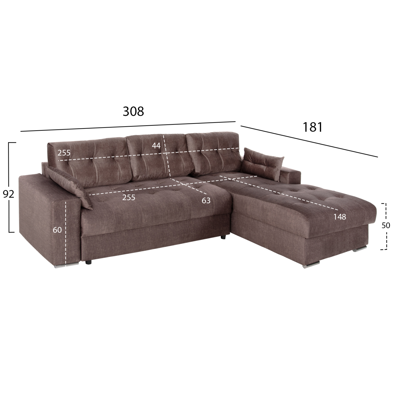 ΓΩΝΙΑΚΟΣ ΚΑΝΑΠΕΣ-ΚΡΕΒΑΤΙ ΜΕ ΑΠΟΘ.ΧΩΡΟ CLANCY HM3281.03R ΚΑΦΕ ΥΦΑΣΜΑ 308x181x92Υεκ.
