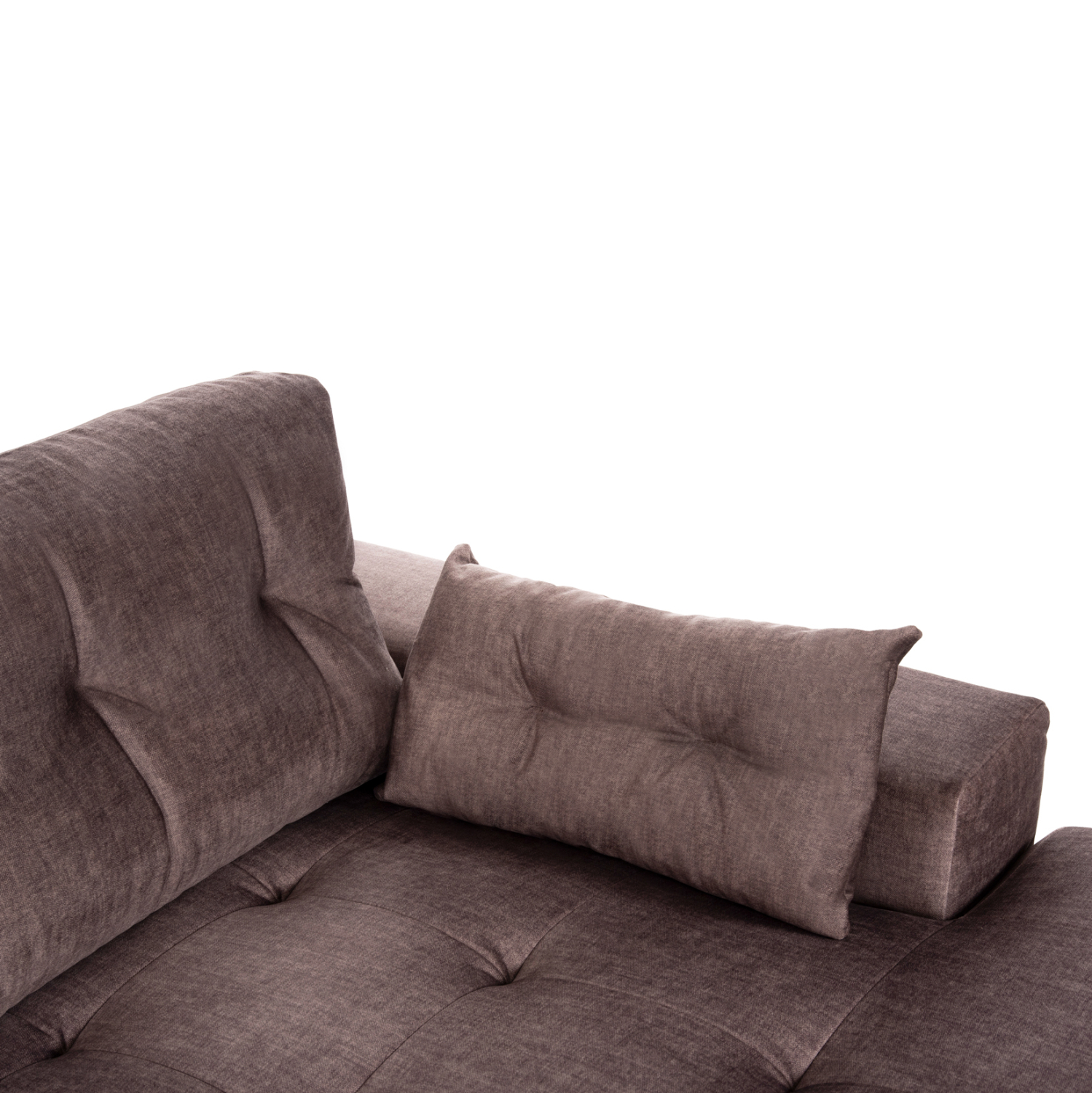 Ο CLANCY είναι ένας καινούργιος 3-θέσιος καναπές με ψηλό ύψος καθίσματος σε διαμόρφωση δεξιάς γωνίας (όπως τον κοιτάς) που θα σας ενθουσιάσει. Είναι επενδυμένος με όμορφο γυαλιστερό (στυλ σατέν) ύφασμα σε ΚΑΦΕ χρώμα και καπιτονέ τεχνοτροπία, ενώ το κομμάτι που σχηματίζει την γωνία ενώνεται με τον κυρίως καναπέ με κατακόρυφους αναρτήρες πάνελ. Διαθέτει 3 μαξιλάρια πλάτης και 2 μικρότερα διακοσμητικά μαξιλαράκια, ενώ το κάθισμα διαθέτει γεμίσματα αφρού μεσαίας σκληρότητας σε συνδυασμό με οριζόντια (ζιγκ-ζαγκ) ελατήρια προσφέροντας απαράμιλλη άνεση. Το χαρακτηριστικό, όμως, που κάνει αυτόν τον υπέροχο καναπέ να ξεχωρίζει, είναι ότι με δύο απλές κινήσεις (μηχανισμός PUMA) γίνεται διπλό κρεβάτι, προσφέροντας μια ποιοτική λύση όπου και όταν χρειαστεί! Απλά ανασηκώνετε το κάθισμα του κυρίως καναπέ και το τραβάτε προς τα έξω. Και σαν να μην έφτανε αυτό, ακριβώς κάτω από το κάθισμα της γωνίας του καναπέ, υπάρχει αποθηκευτικός χώρος που ολοκληρώνει την πρακτικότητα αυτού του μοναδικού επίπλου! Και φυσικά, σας προσφέρουμε αυτόν τον καναπέ με εγγύηση σκελετού 3 ετών! Ακόμα το σκέφτεστε;