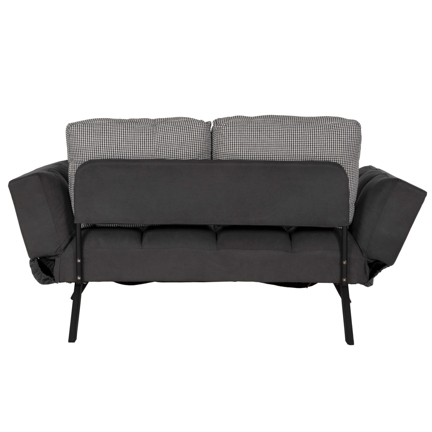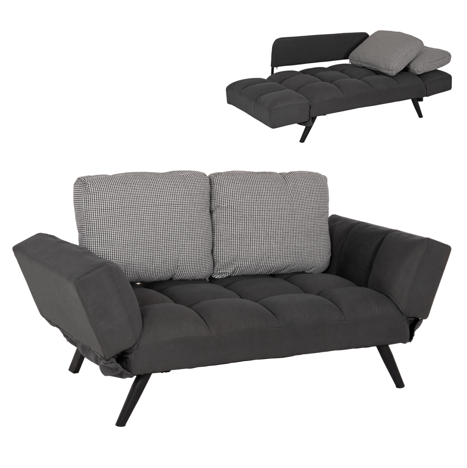 Τα πόδια του καναπέ είναι μεταλλικά σε μαύρη απόχρωση και τα αναδιπλούμενα μπράτσα ρυθμίζονται σαν μαξιλάρια σε διάφορες θέσεις.
