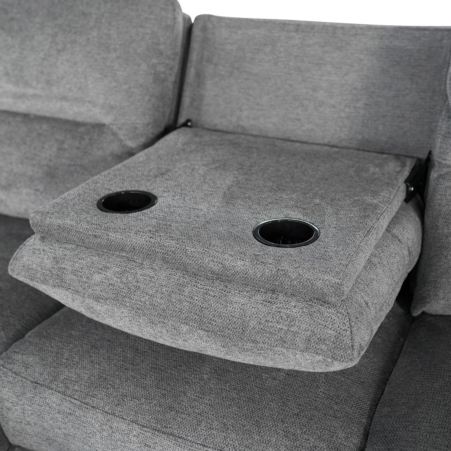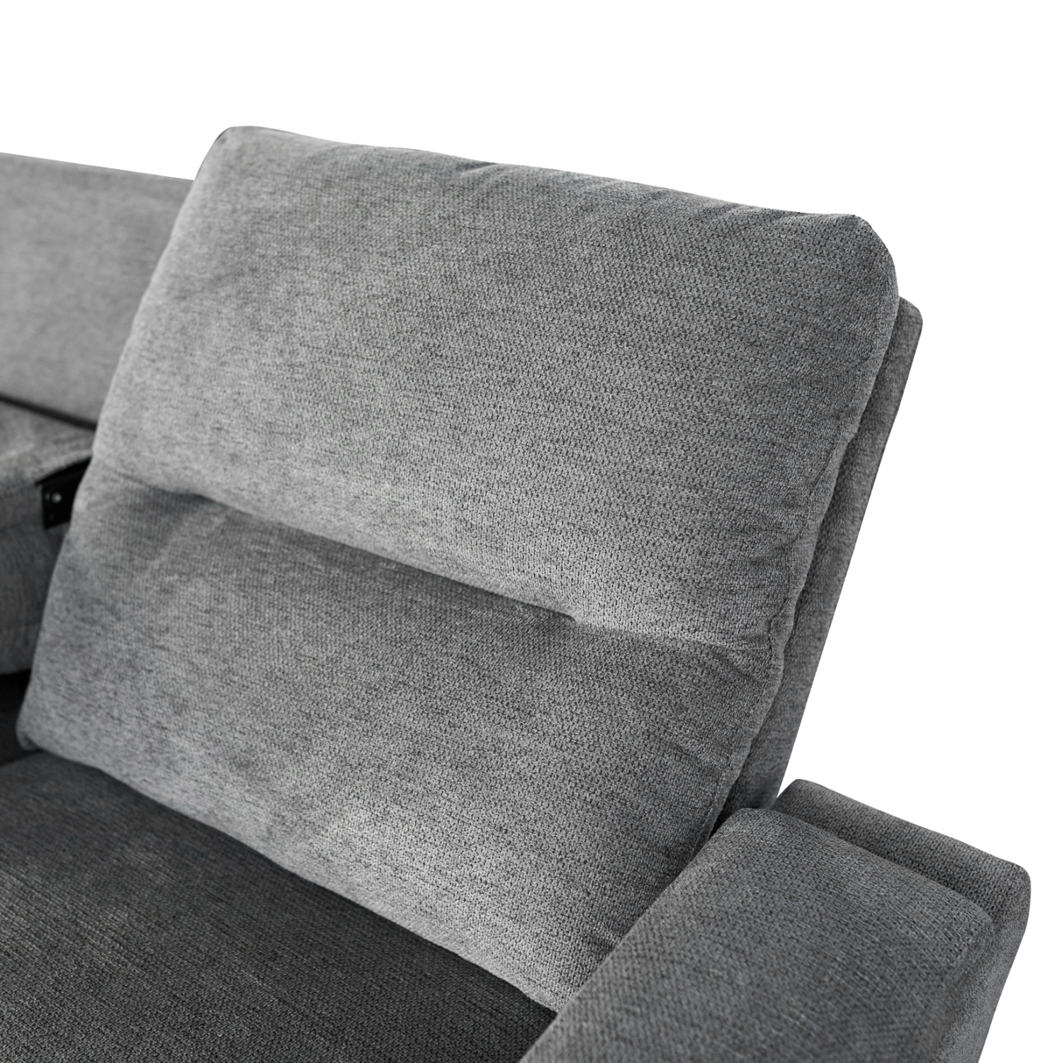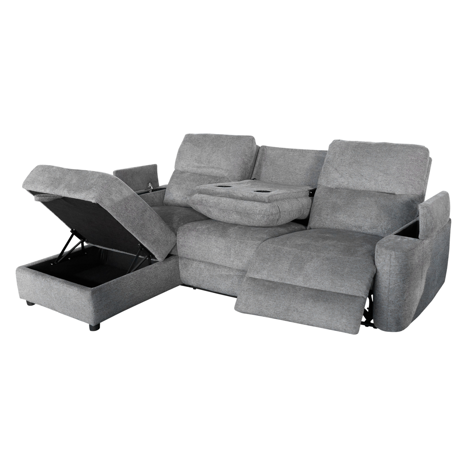 Τριθέσιος Αριστερός Γωνιακός Καναπές SYNTHIA– ΓΚΡΙ Ύφασμα, με Ηλεκτρικό Ανακλινόμενο Κάθισμα, Αποθηκευτικό Χώρο & Πτυσσόμενο Τραπέζι