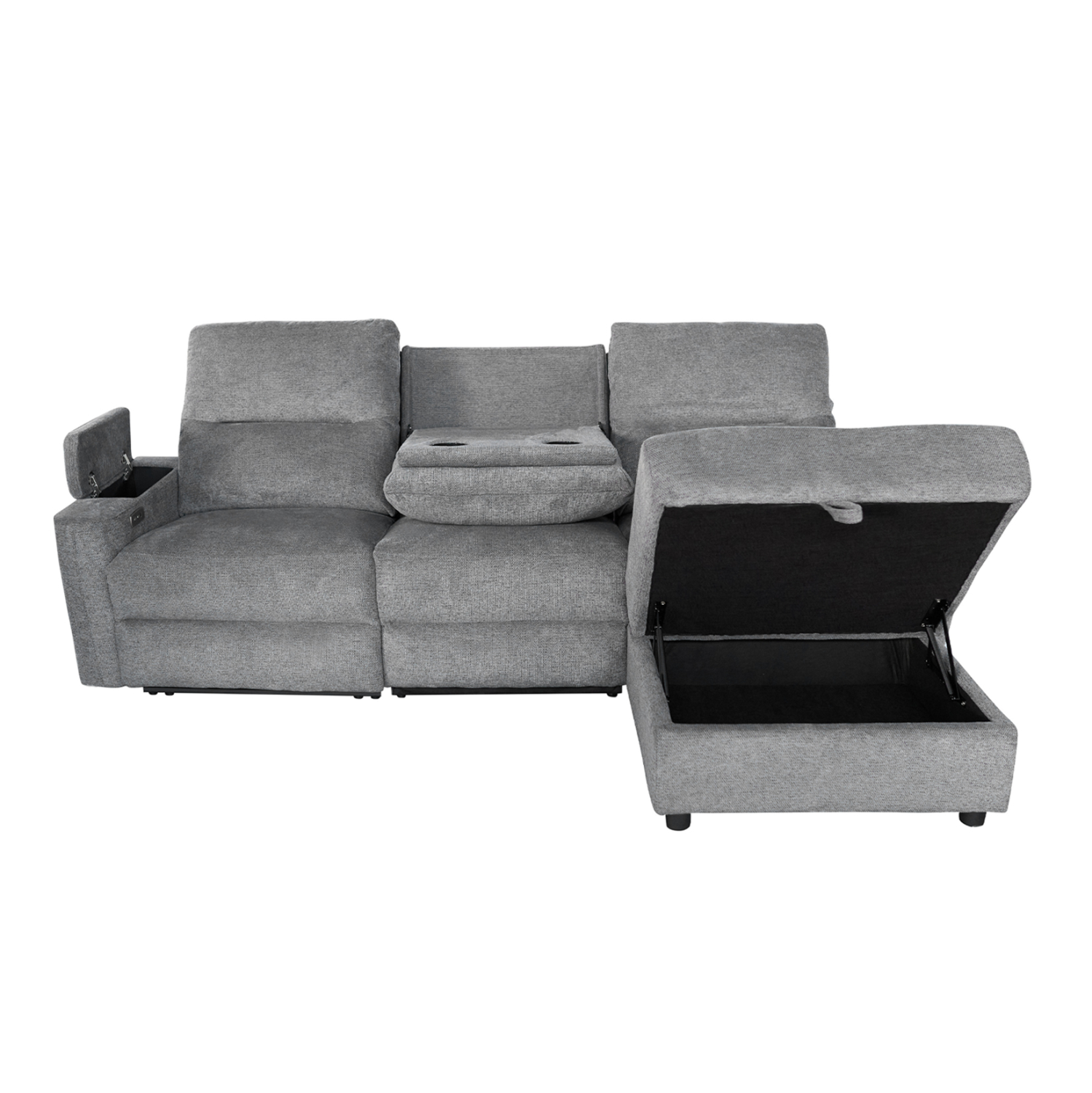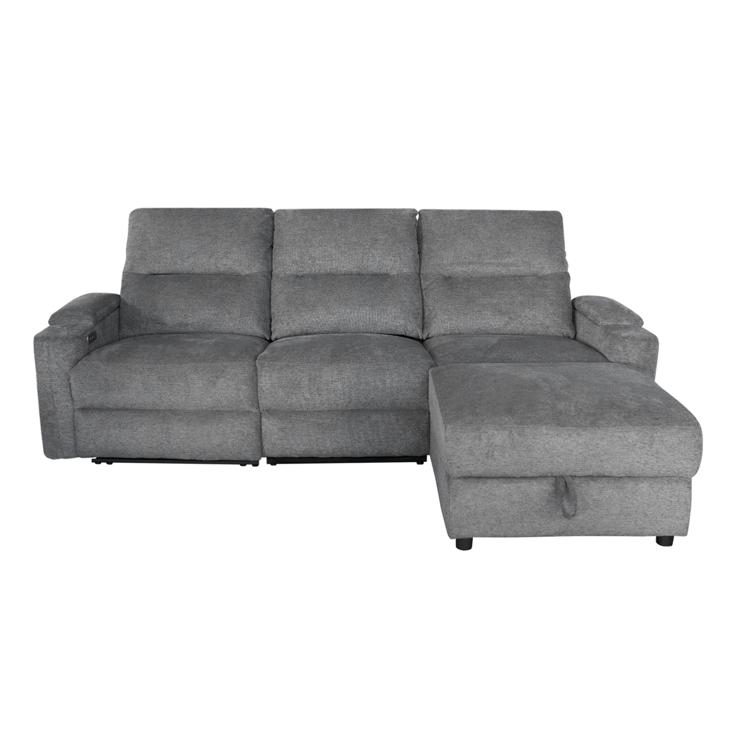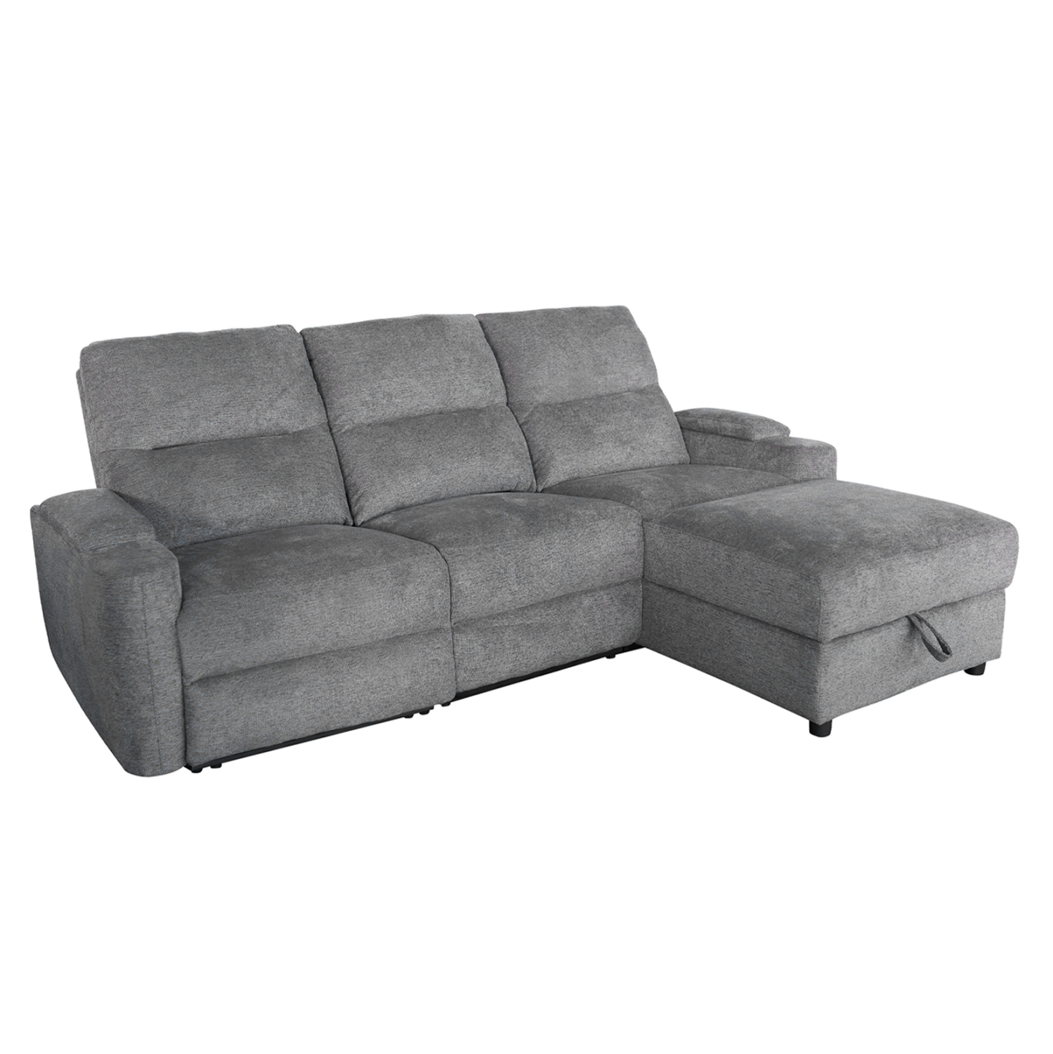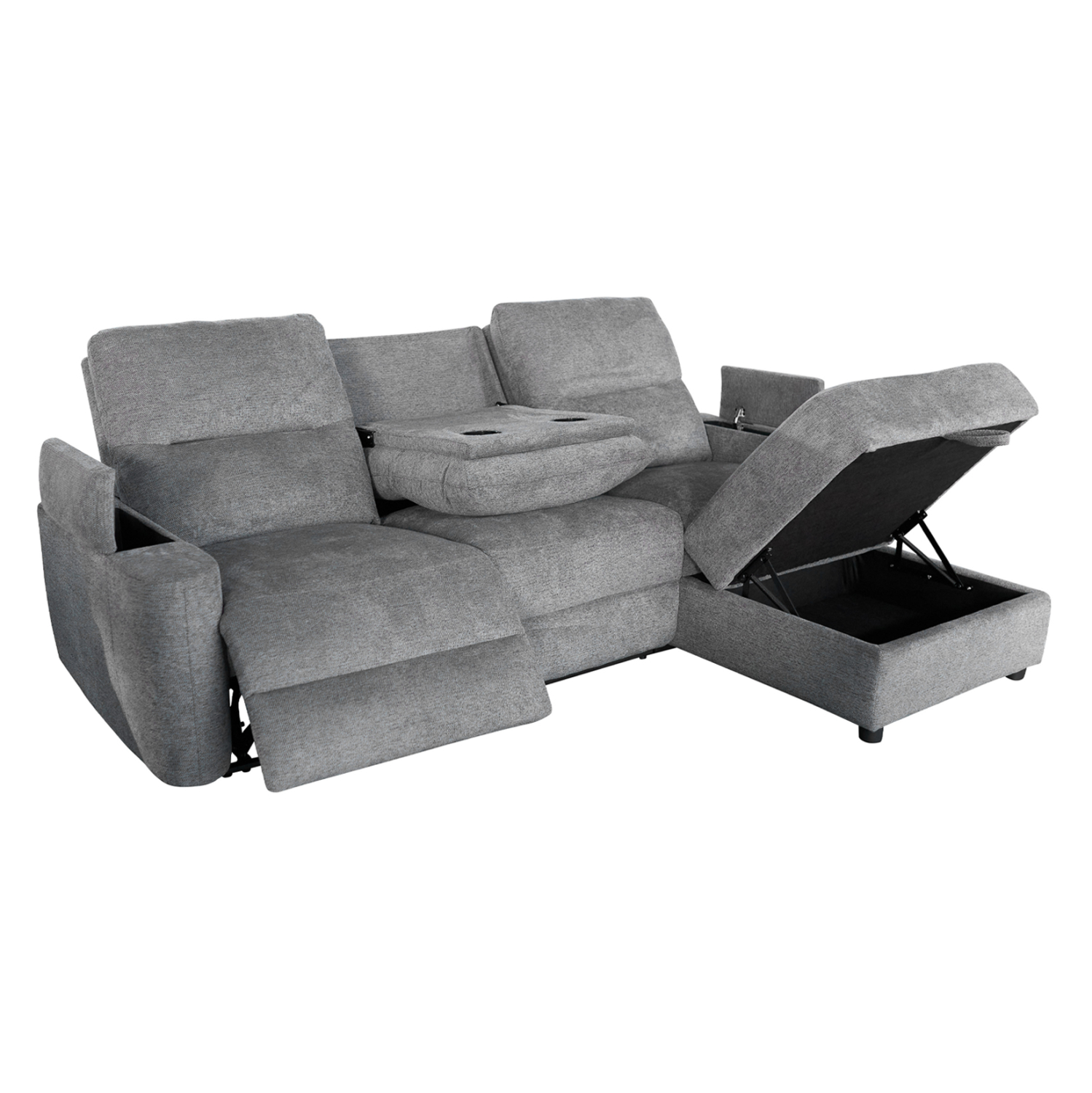 Τριθέσιος Δεξιός Γωνιακός Καναπές SYNTHIA– ΓΚΡΙ Ύφασμα, με Ηλεκτρικό Ανακλινόμενο Κάθισμα, Αποθηκευτικό Χώρο & Πτυσσόμενο Τραπέζι