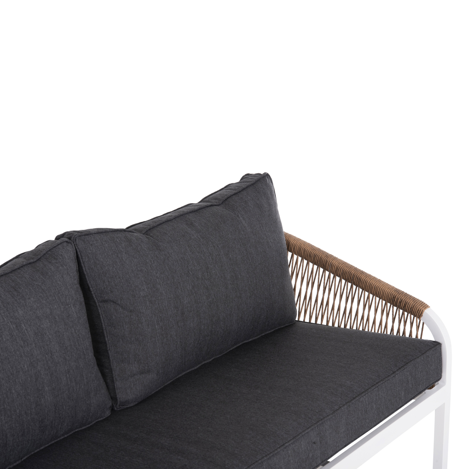 Ο σκελετός του καναπέ είναι από αλουμίνιο βαμμένο με ηλεκτροστατική βαφή. Το αλουμίνιο είναι μέταλλο με εξαιρετικές μηχανικές ιδιότητες και πολύ ανθεκτικό στις διάφορες μορφές διάβρωσης από την φύση του και απαιτεί ελάχιστο κόστος συντήρησης. Μπορεί να ανακυκλωθεί απεριόριστα, διατηρώντας τα χαρακτηριστικά του χωρίς καμία ποιοτική υποβάθμιση.